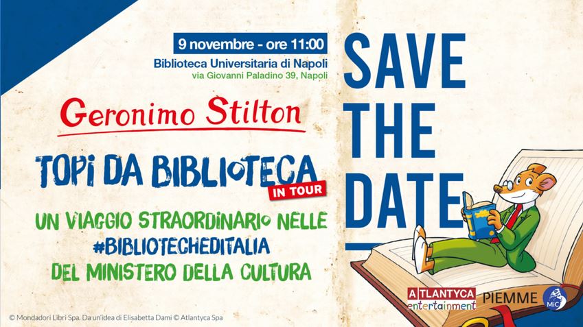 Napoli è di nuovo protagonista del tour di Geronimo Stilton nelle Biblioteche d’Italia del Ministero della Cultura: mercoledì 9 novembre, alle ore 11.00, la Biblioteca Universitaria di Napoli ospiterà il topo giornalista più amato dalle bambine e dai bambini di tutto il mondo per “lavorare” insieme alla scrittura della sua prossima storia. Geronimo Stilton è alla guida di un percorso che, nelle prossime settimane, farà tappa in alcune delle 46 biblioteche dello Stato, alla scoperta dei segreti del patrimonio librario della Penisola.