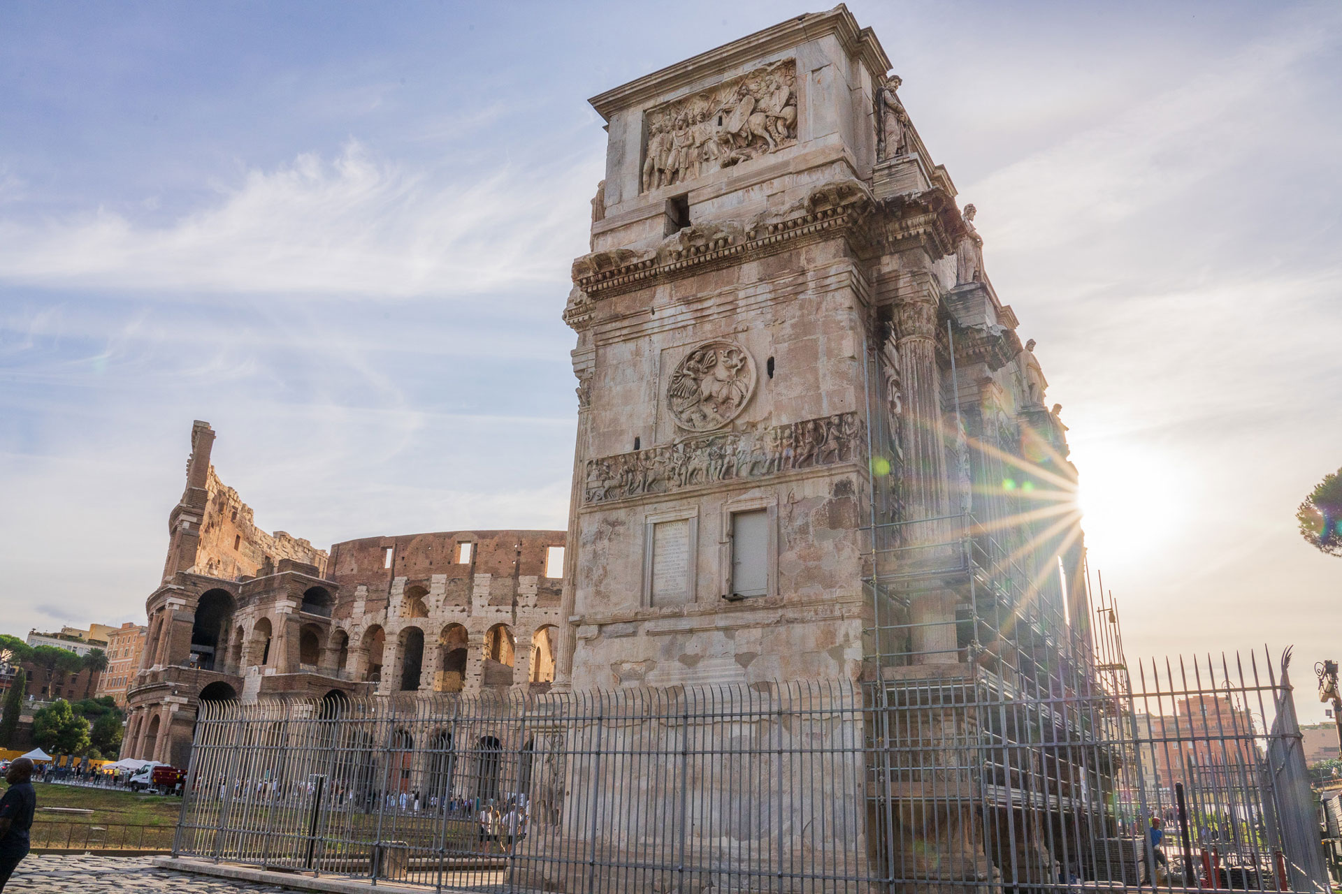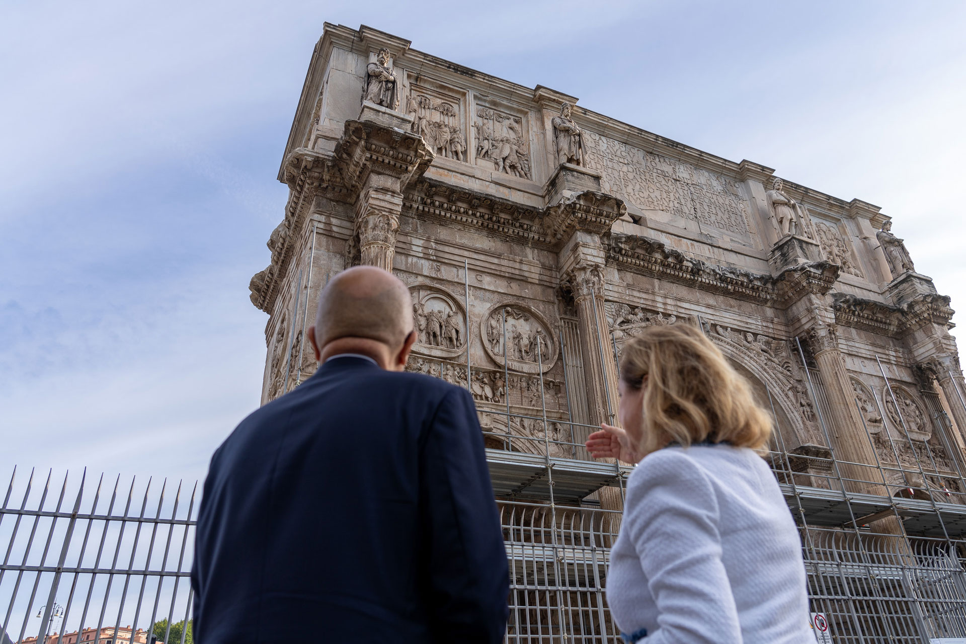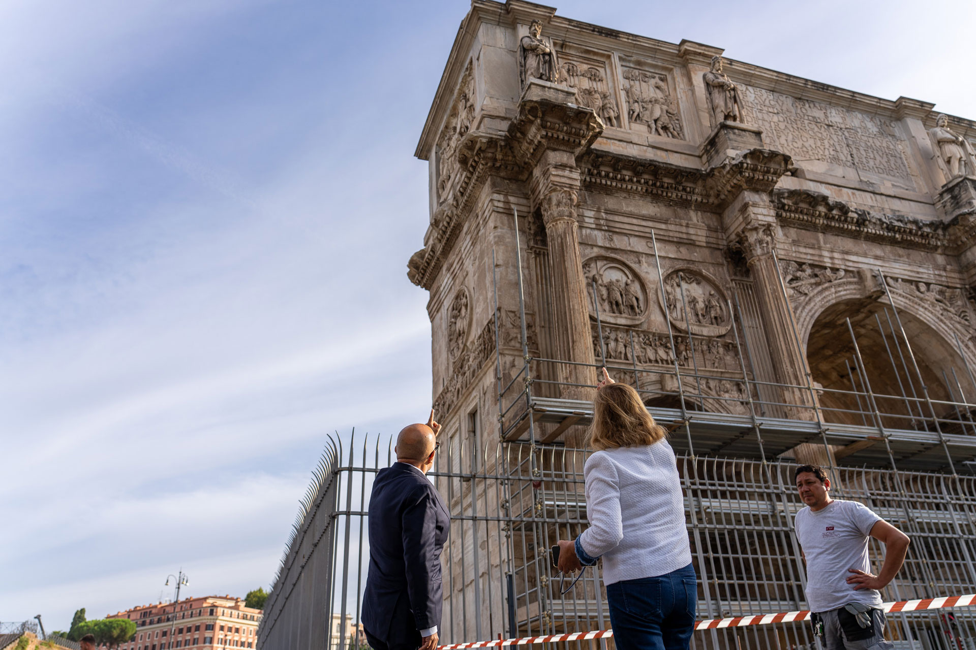 Il Ministro della Cultura, Gennaro Sangiuliano, ha effettuato questa mattina, a Roma, un sopralluogo all’Arco di Costantino, danneggiato da un fulmine lo scorso 3 settembre, in seguito al quale si è staccato un frammento della cornice angolare sud occidentale del monumento.