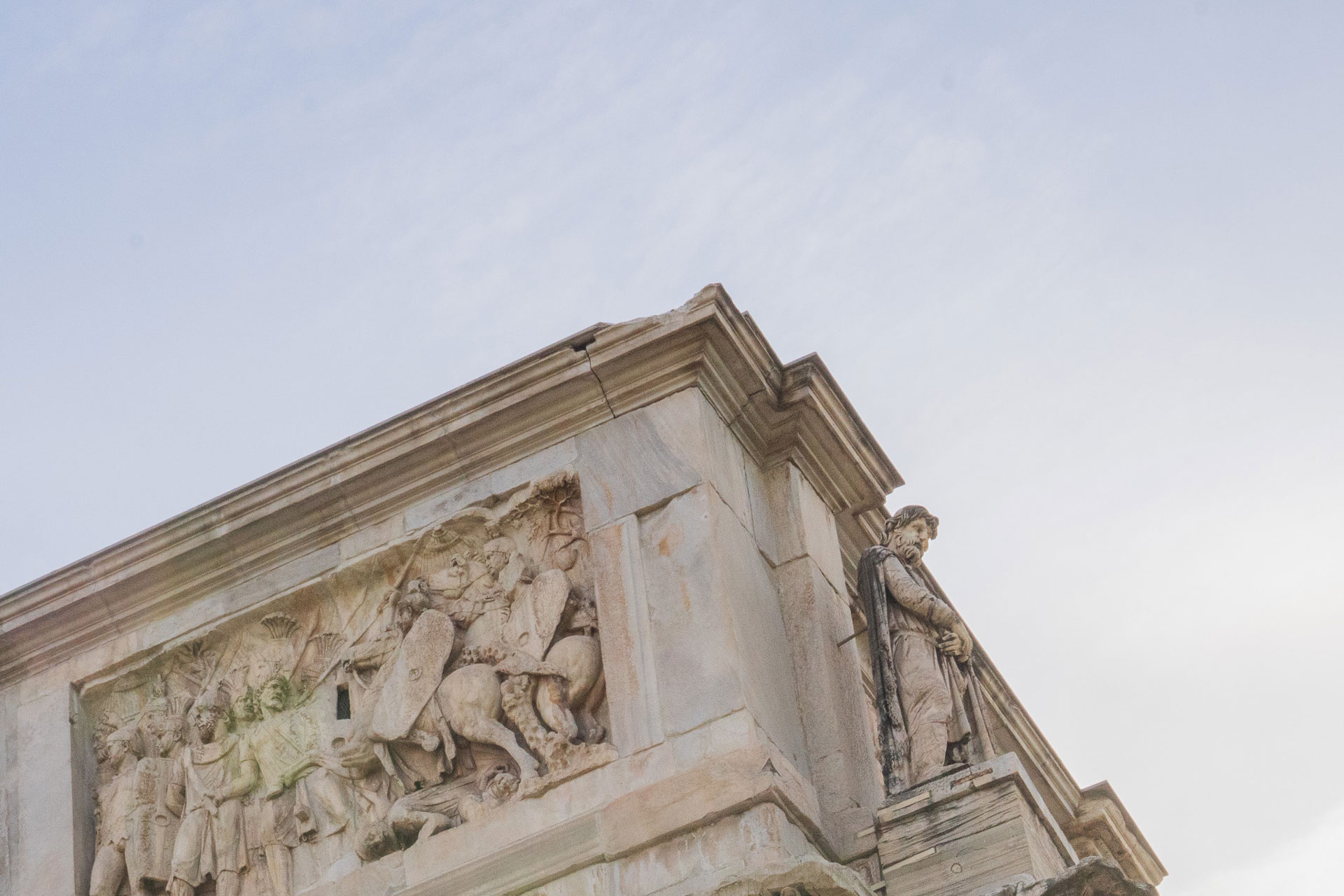 Tutti i frammenti caduti al suolo sono stati recuperati e collocati nei depositi del Colosseo grazie al tempestivo intervento dei tecnici e del personale del Parco archeologico. Sin dalle prime ore della mattina del 4 settembre sono iniziati i rilievi fotografici e, con l’ausilio di una piattaforma elevatrice il settore interessato è stato messo in sicurezza con il recupero degli ulteriori frammenti danneggiati e con un pronto intervento sulle superfici. La zona interessata fa parte del restauro moderno della copertura dell'attico dell’Arco. Come già anticipato, l'intervento tempestivo si inserisce in un cantiere di manutenzione straordinaria del fronte meridionale dell’Arco già in essere e la cui prosecuzione con il completamento dei ponteggi prosegue già da ieri 5 settembre.