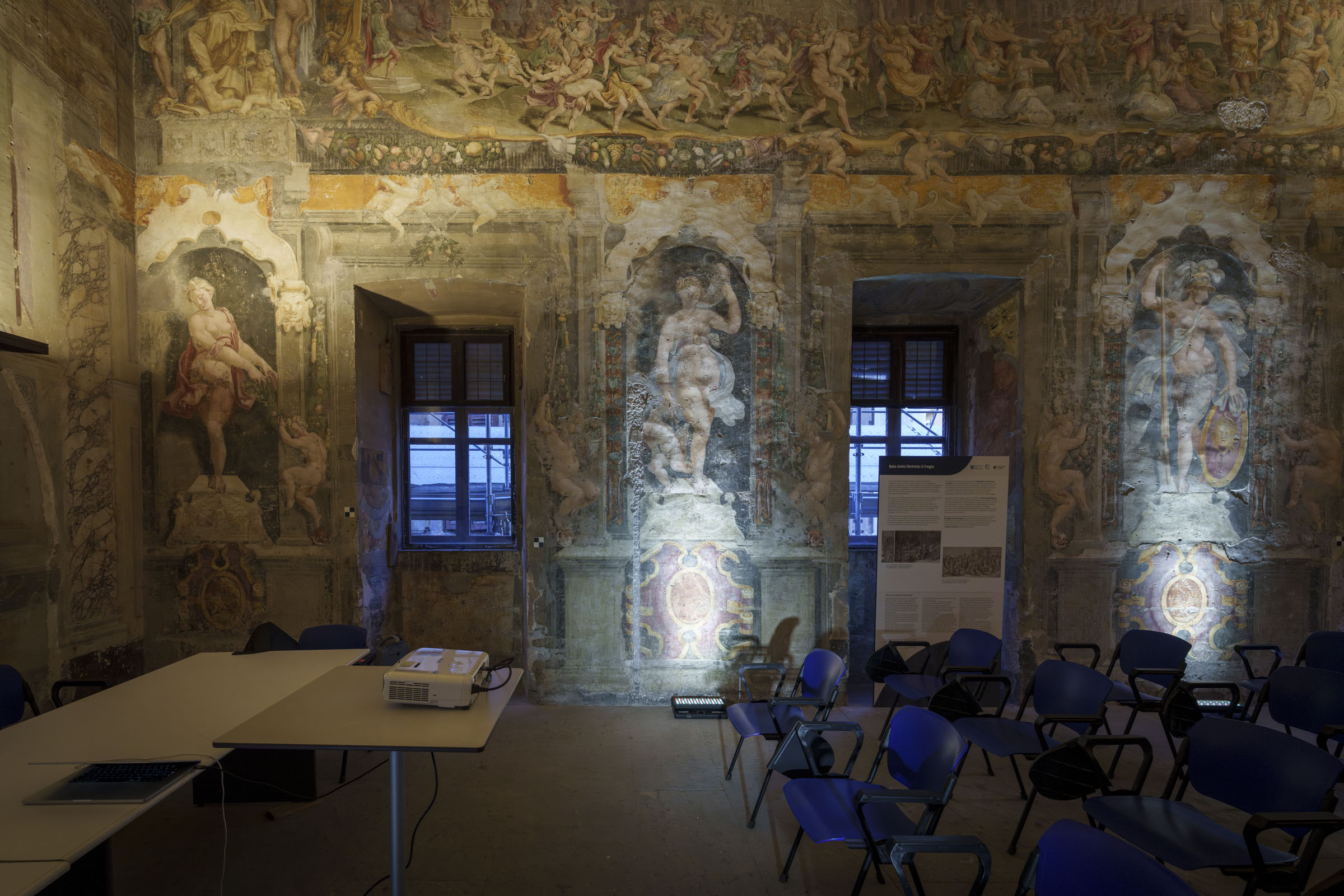 Gli ospiti hanno ammirato ambienti di grande valore artistico, come la Sala delle Divinità con affreschi cinquecenteschi che intrecciano miti e allegorie, la Sala degli Imperatori e delle Virtù che celebra la storia di Roma e i suoi valori, e la Sala di Amore e Psiche che racconta la favola di Apuleio. L’Ala Medicea ospita una cappella privata e uno studiolo decorato, mentre il Ninfeo degli Uccelli, originariamente ricco di giochi d’acqua e statue, conserva ancora oggi elementi decorativi di grande fascino.