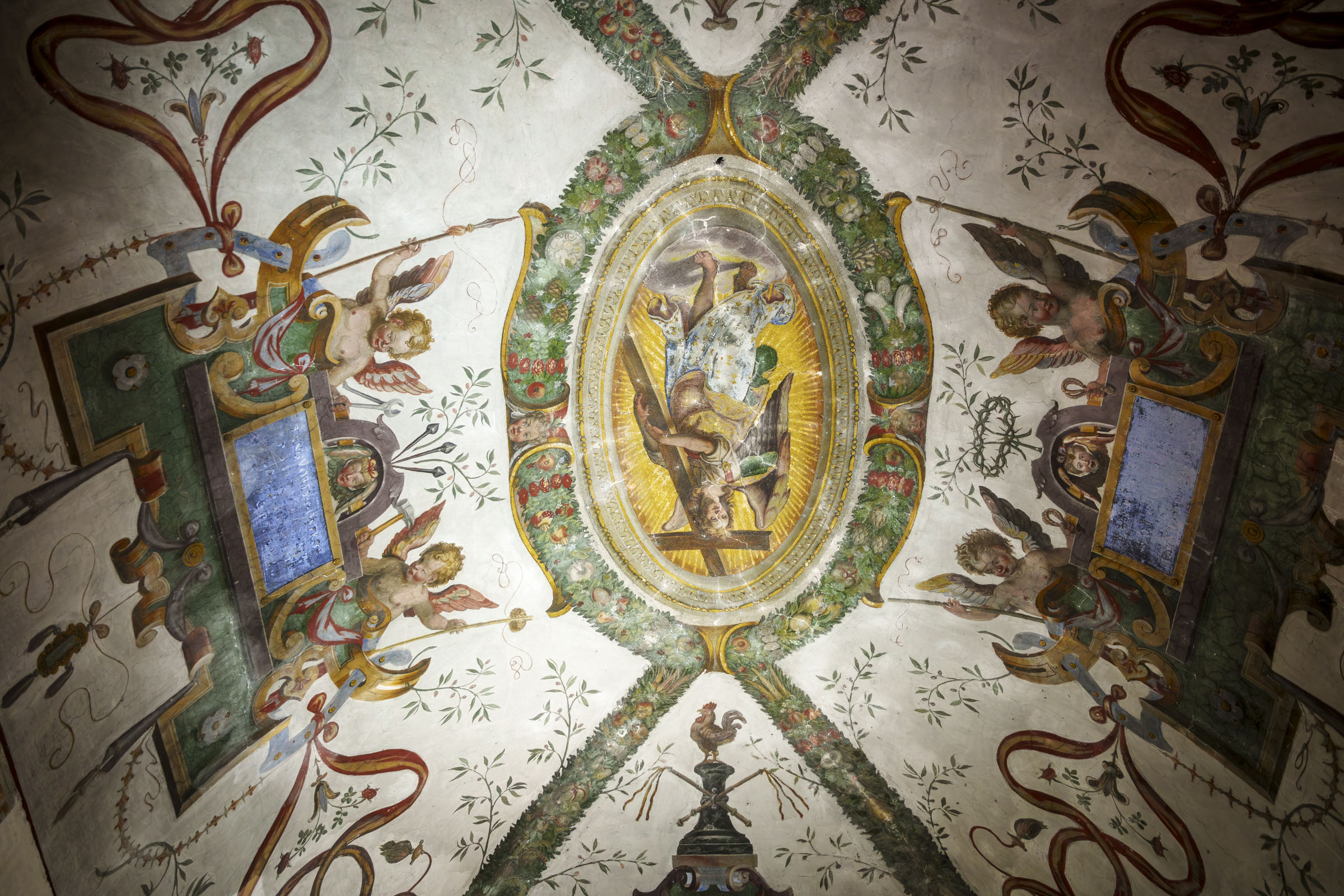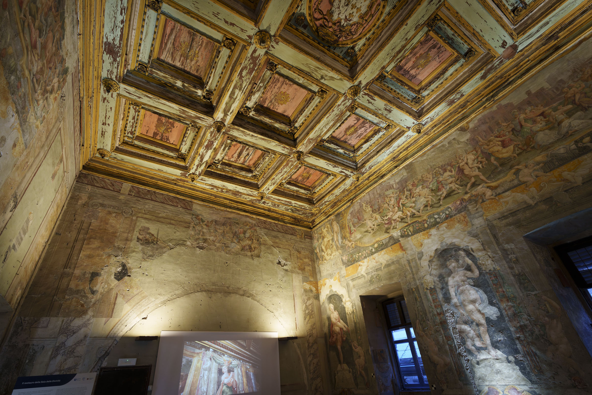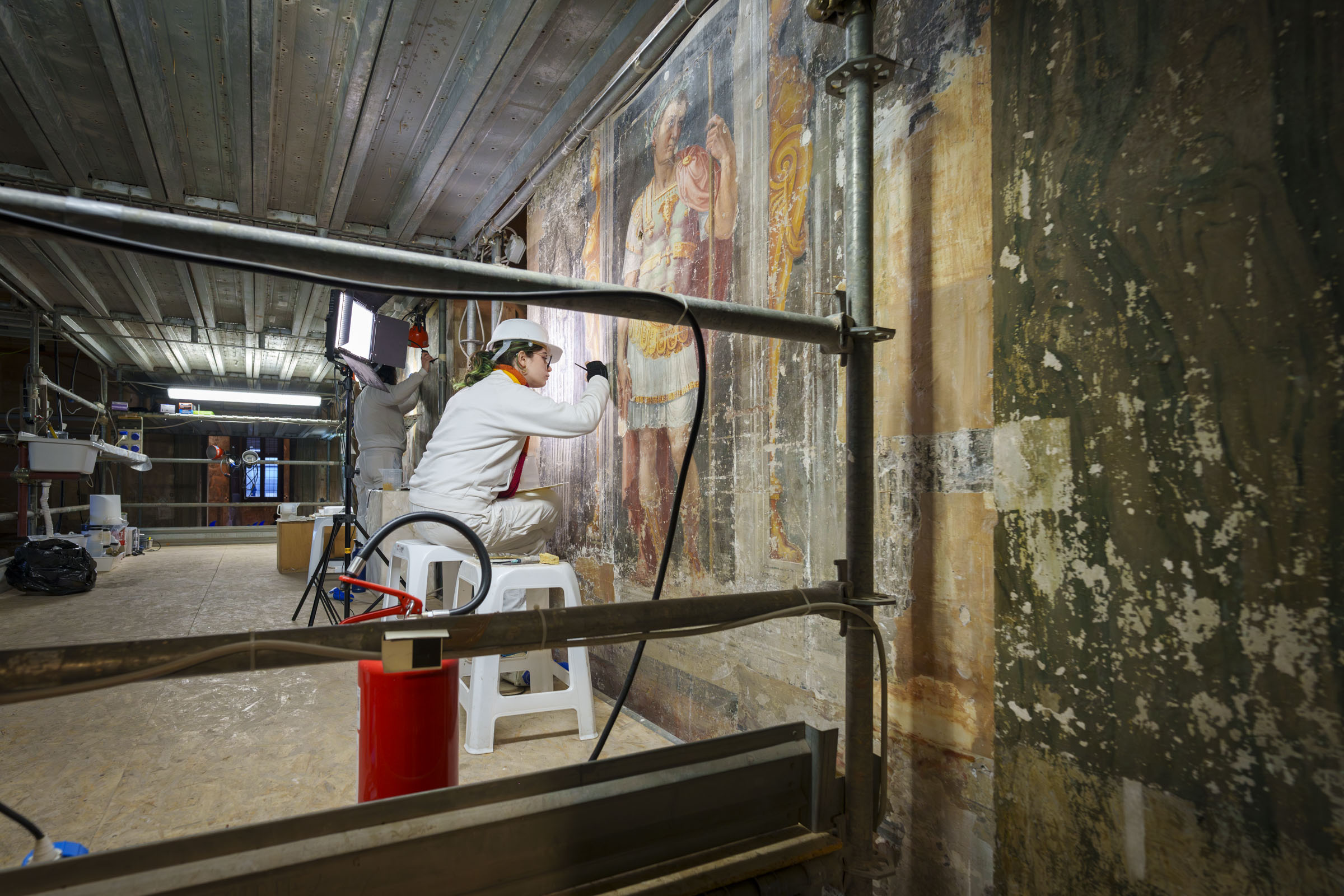 Villa Silvestri Rivaldi si conferma un autentico scrigno d’arte, storia e memoria urbana. Nata come residenza, quasi a fare da “propilei farnesiani” tra il Colosseo e il Foro, la villa fu concepita nel Cinquecento come luogo di rappresentanza e accoglienza, con ampie sale affrescate con un programma iconografico che celebrava la storia di Roma e di Chiesa madre, con omaggi a Paolo III Farnese. Nei secoli, la villa ha poi visto alternarsi famiglie illustri come i Medici, i Colonna, i Margotti e i Pio di Savoia, fino alla trasformazione in convento nel ‘600, grazie alla donazione di Ascanio Rivaldi e, quindi, nella più importante fabbrica tessile della Roma del Seicento. In questi anni gli affreschi vennero coperti da anonime ridipinture e sono scomparsi fino al XXI secolo.