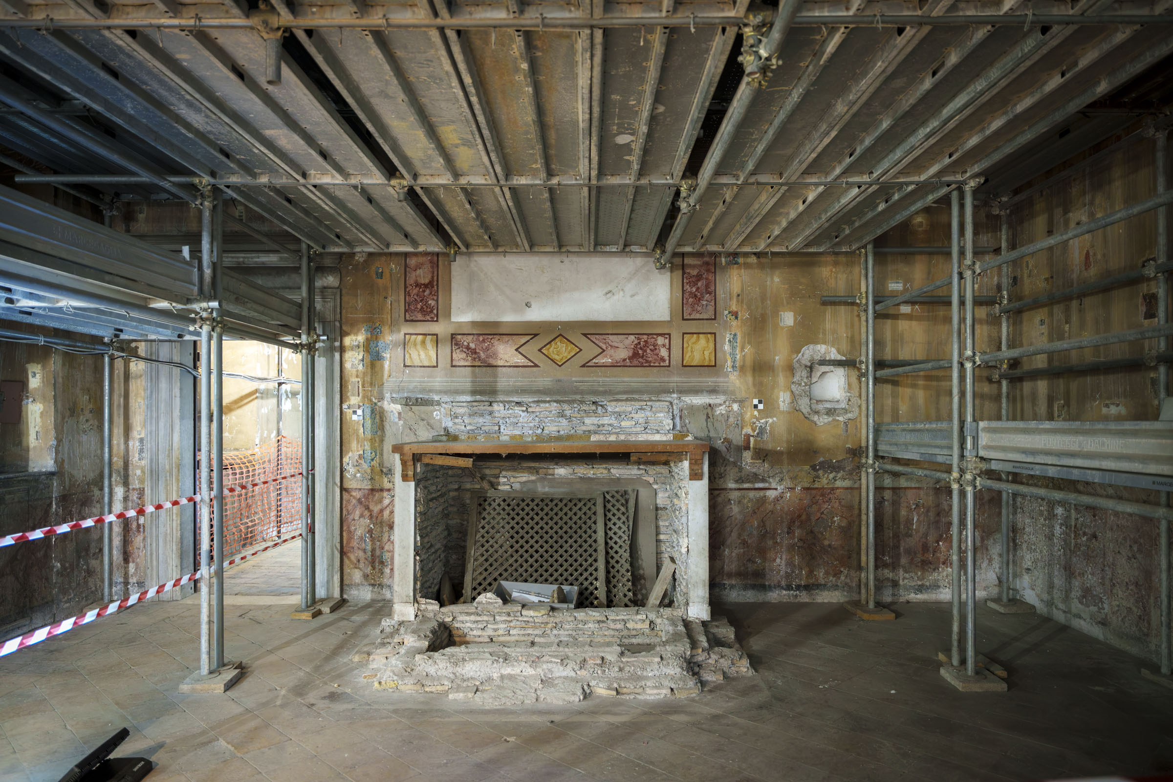 Il percorso di visita, che sarà aperto al pubblico nei prossimi giorni, conduce dal portale bugnato attraverso l’androne, la Portaria, il Fondaco delle Mendicanti e l’ala di servizio, fino allo scalone in peperino che porta al piano nobile e alla torre medicea. Le ali del palazzo poggiano su strutture romane di età imperiale, con fondazioni profonde e ambienti voltati che testimoniano la continuità di vita e trasformazione del sito dal mondo antico al Rinascimento.