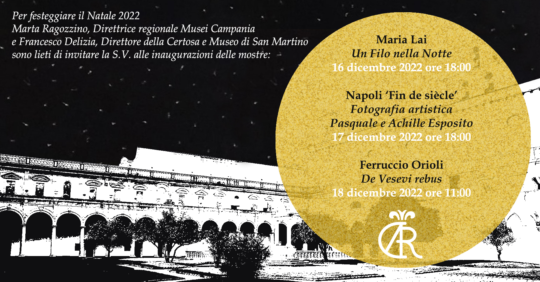 In occasione delle due inaugurazioni serali, venerdì 16 e sabato 17 dicembre, la Certosa e Museo di San Martino prolungherà l’orario di apertura dalle 17.00 alle 20.00, con ultimo ingresso in biglietteria alle ore 19.00.