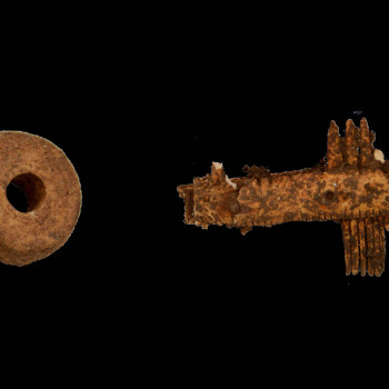 Tra i pochi elementi di corredo sono stati individuati pettini in osso, fusi circolari da telaio, un orecchino in rame, assieme a occasionali frammenti di ceramica a impasto grezzo.