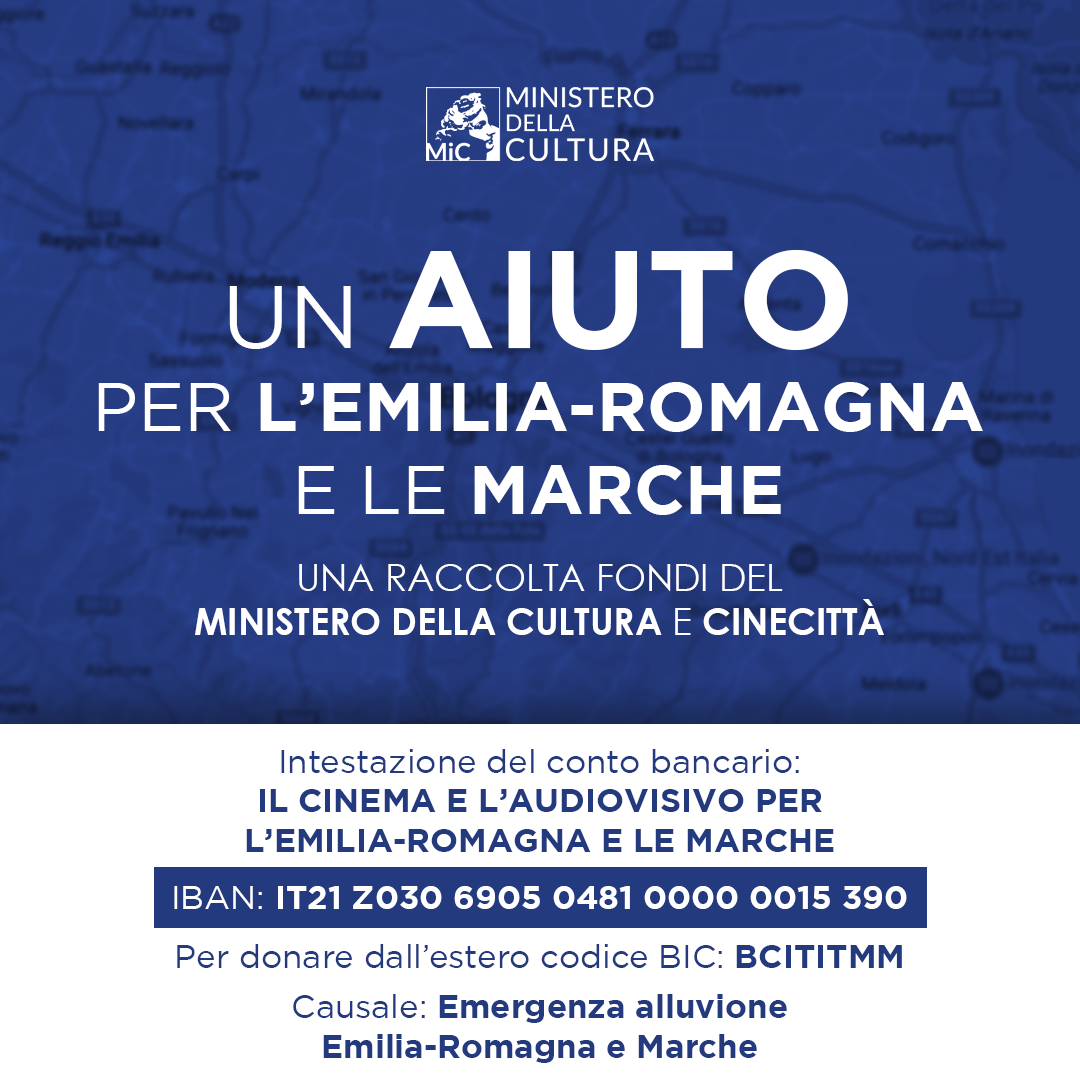 Continua la raccolta fondi del Ministero della cultura a sostegno delle persone e delle realtà dell’Emilia-Romagna e delle Marche gravemente colpite dal maltempo. La Direzione Generale Cinema e Audiovisivo ha incaricato Cinecittà di aprire un conto dedicato. Già coinvolte le principali associazioni del settore cinematografico. [continua]