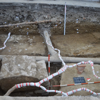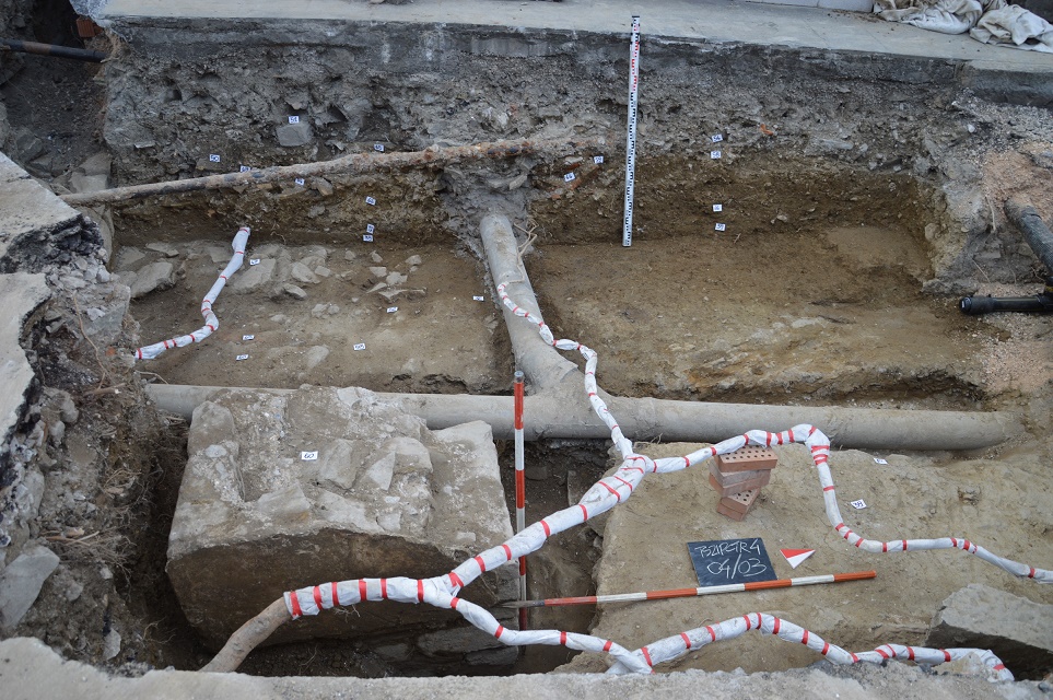 La Soprintendenza, sulla base della Valutazione dell’Impatto Archeologico obbligatoria per tutte le opere pubbliche, aveva prescritto per questi lavori sondaggi esplorativi e la sorveglianza continua da parte di impresa archeologica specializzata. La zona infatti è nelle immediate adiacenze del nucleo centrale della città romana, con i suoi più importanti edifici pubblici.