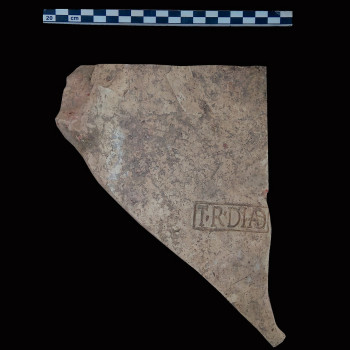 Quasi tutta l’ampiezza del saggio è infatti interessata dalla preparazione di una superficie pavimentale (a cui appartengono probabilmente dei blocchi di cocciopesto, trovati nella distruzione superiore), che a sua volta si collega con un imponente pilastro (m 1,20 x 1,20, per un’altezza conservata di circa un metro): eseguito con grande cura, esso conserva tre dei quattro lati ancora coperti da intonaco di colore bianco, dello stesso tipo degli abbondanti frammenti recuperati in uno scarico di materiale edilizio, comprendenti anche elementi modanati, che ci riportano al primo stile pompeiano (risalente ad epoca repubblicana).