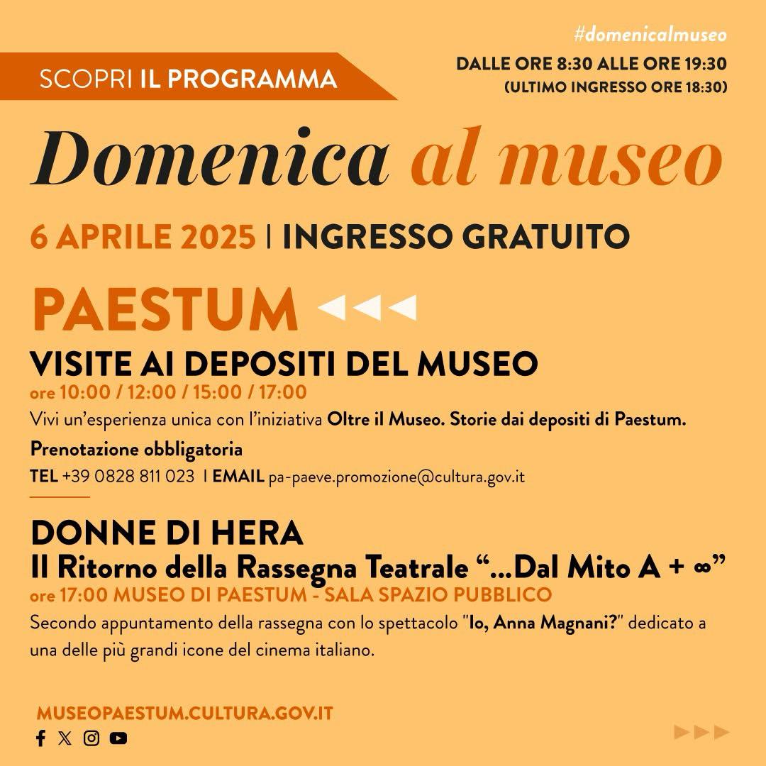 I Parchi archeologici di Paestum e Velia, in collaborazione con l’Accademia Magna Graecia diretta da Sarah Falanga, promuovono, all’interno del Museo Archeologico Nazionale di Paestum, “Donne di Hera”, un ciclo di spettacoli dedicati a grandi figure femminili della storia e della cultura. Domenica 6 aprile 2025, alle ore 17:00, si terrà il secondo appuntamento della rassegna con lo spettacolo “Io, Anna Magnani?”, dedicato a una delle più grandi icone del cinema italiano.