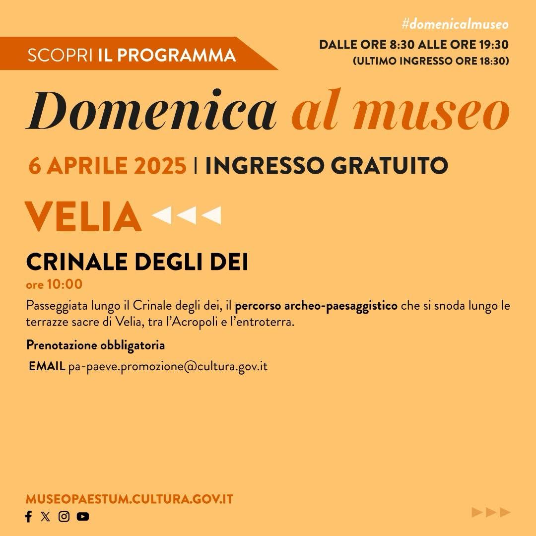 Un’opportunità straordinaria per conoscere il patrimonio storico e culturale dei siti di Paestum e Velia, accessibili a tutti e aperti dalle ore 8:30 alle ore 19:30 (ultimo ingresso alle ore 18:30) e per partecipare a tutte le attività in programma: visite ai depositi del Museo, spettacolo teatrale, passeggiata sul Crinale degli Dei e servizio di navetta gratuita tra i due siti e a Velia.