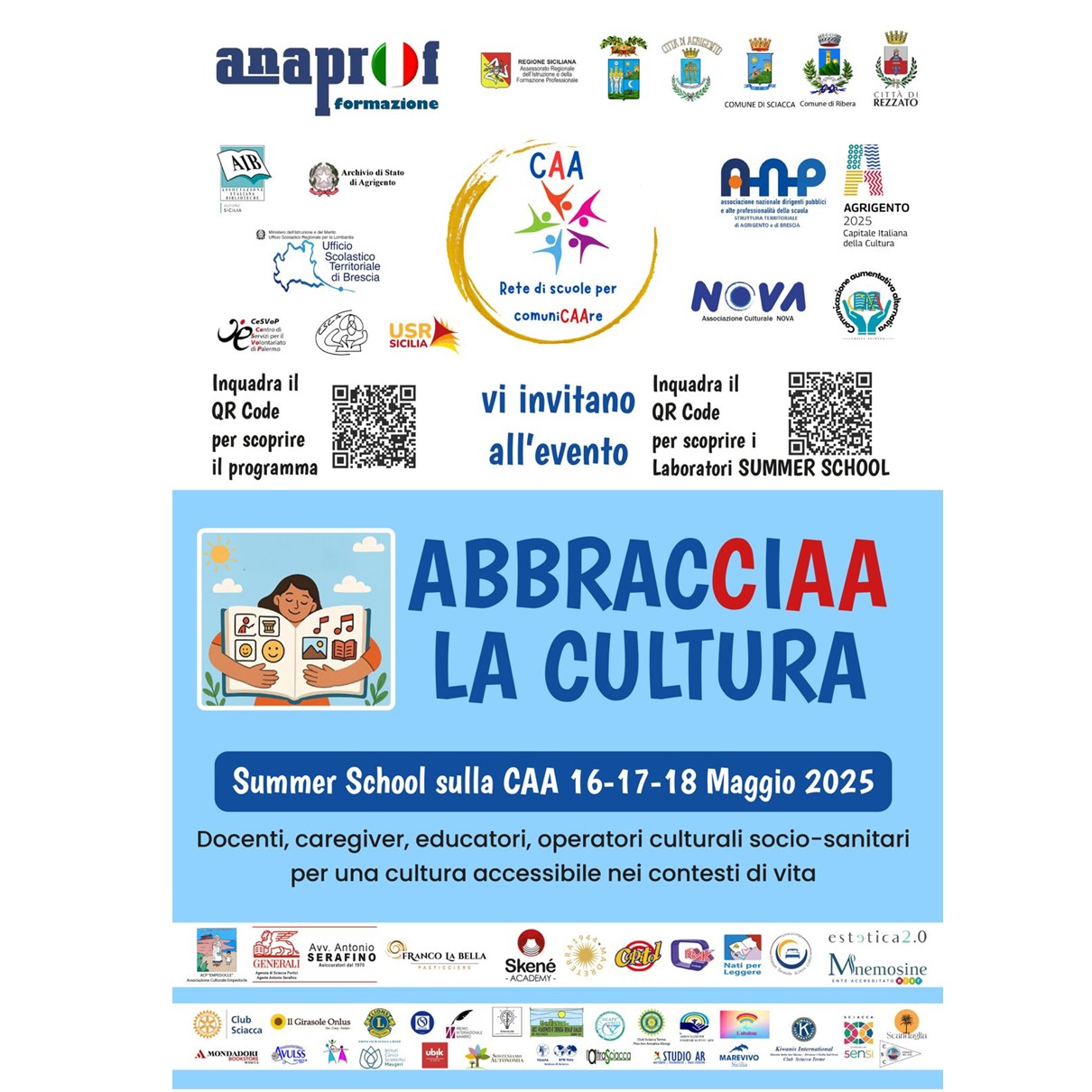 L’Archivio di Stato di Agrigento partecipa alla Summer School sulla CAA, la Comunicazione Aumentativa Alternativa, che si terrà presso il Comune di Sciacca (Ag) dal 16 al 18 Maggio 2025. Un’iniziativa promossa dalla “Rete di scuole per comuniCAAre”, nata a Rezzano, in provincia di Brescia, che oggi unisce 25 istituti italiani, tra cui sei scuole del territorio agrigentino. Il progetto promosso dalla rete rappresenta un ponte che unisce idealmente l’Italia nella promozione di una cultura della comunicazione accessibile per tutti attraverso la CAA, la Comunicazione Aumentativa Alternativa, uno strumento per l’inclusione sociale, culturale e scolastica. Docenti, caregiver, educatori, operatori culturali e socio-sanitari per una cultura accessibile nei contesti di vita.