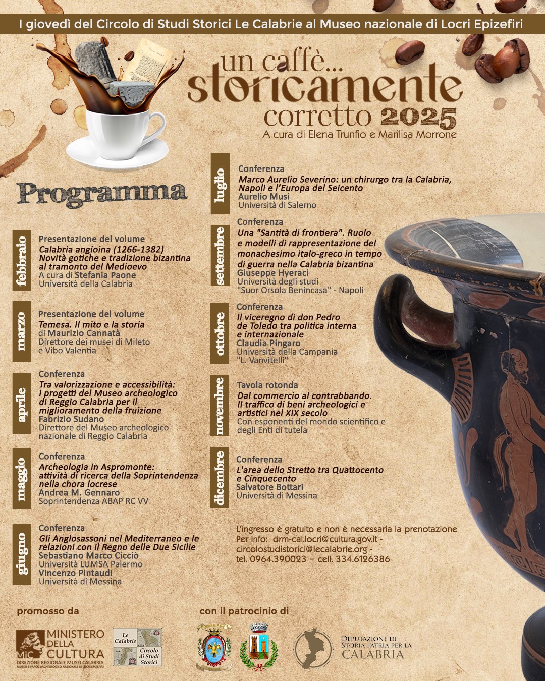 Visto il successo dell’edizione 2024 il Museo archeologico nazionale di Locri e il Circolo di Studi Storici “Le Calabrie” hanno deciso di proporre la seconda edizione di "Un caffè. . . . storicamente corretto".