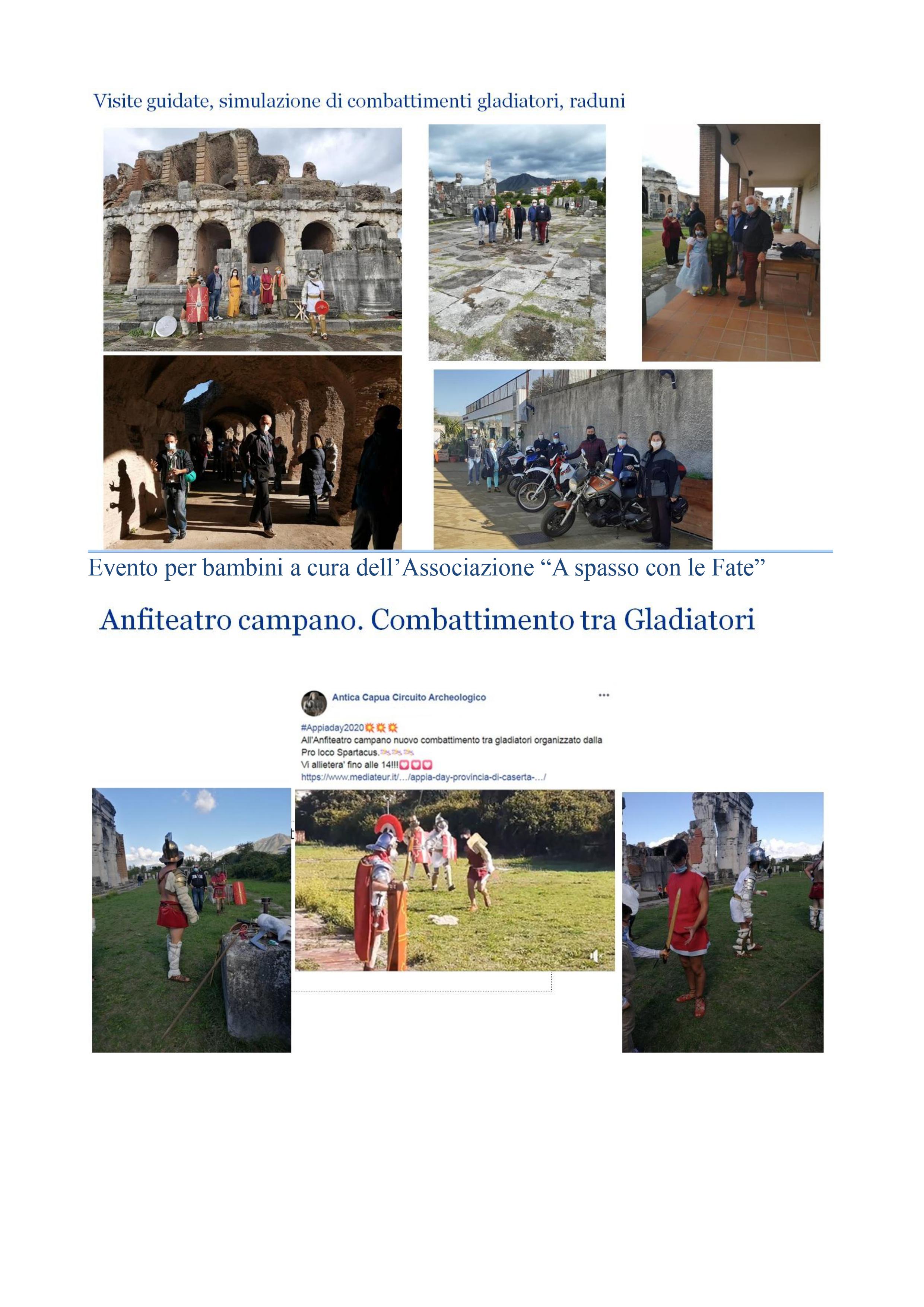 Coinvolti oltre 30 tra istituzioni, enti e associazioni, circa mille visitatori di cui 447 nel Circuito archeologico dell’antica Capua (Anfiteatro campano e Museo archeologico dell’antica Capua), che hanno animato il territorio, nel pieno rispetto delle regole per contenere la diffusione del Covid-19, testimoniando i valori culturali e sociali della via Appia.