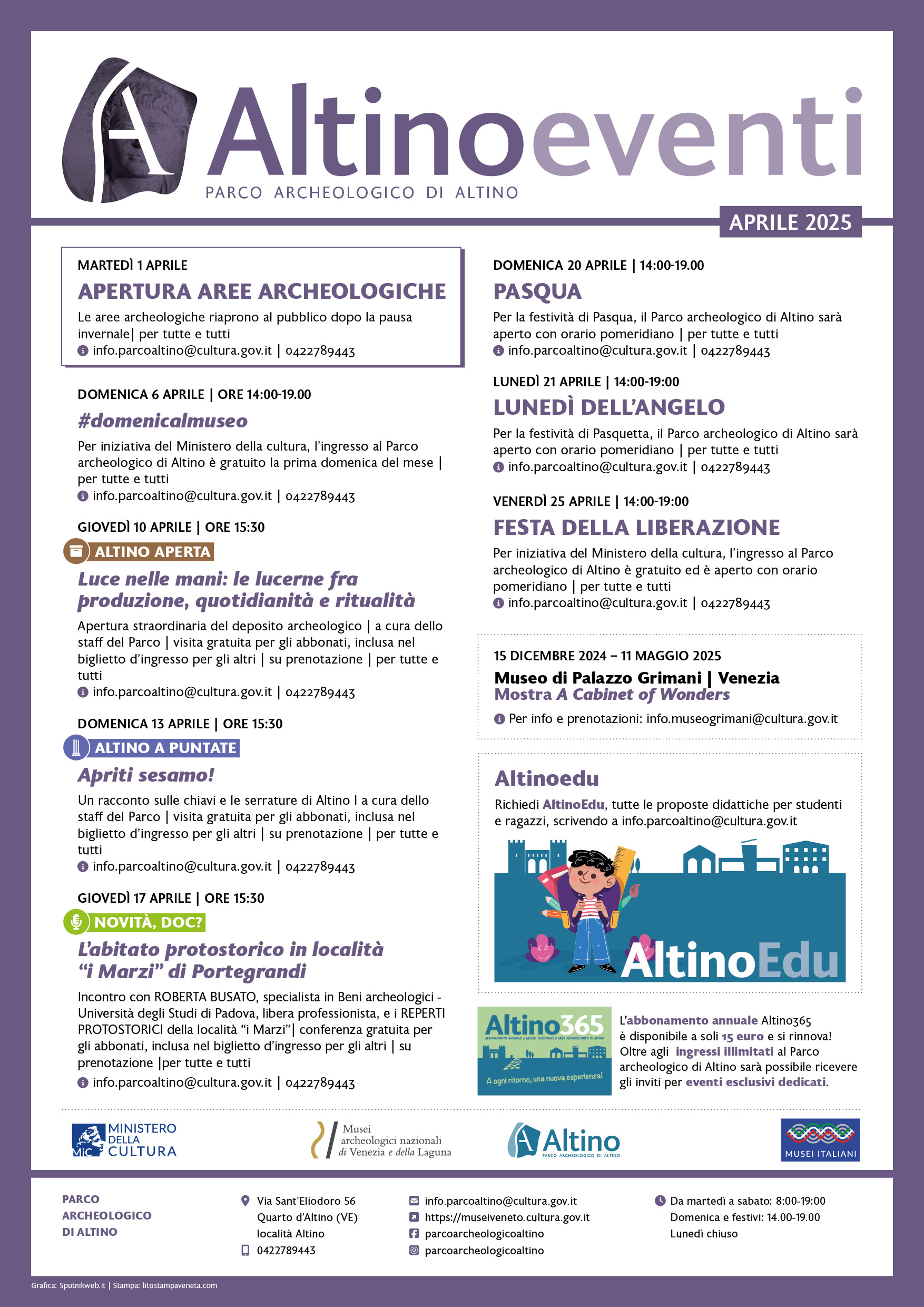 Seguite il Parco archeologico di Altino sulle pagine Facebook e Instagram @parcoarcheologicoaltino per conoscere tutte le novità in arrivo!