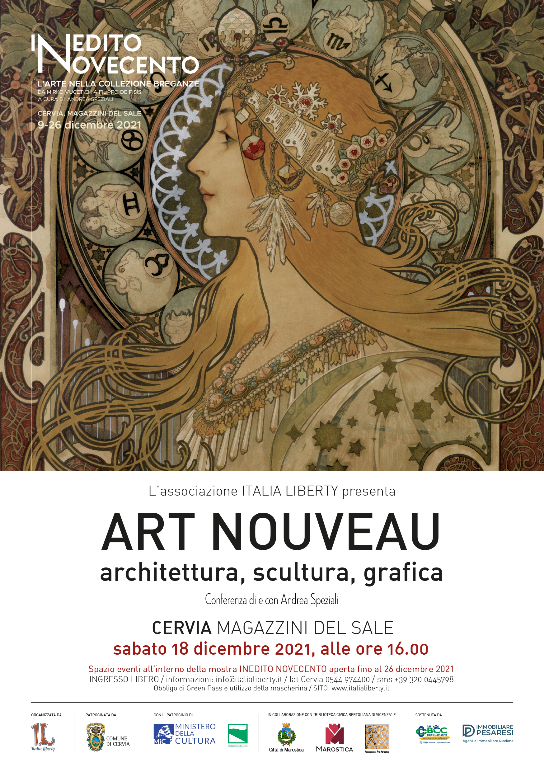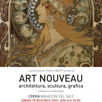 Sabato 18 dicembre alle ore 16:00 si terrà la conferenza scientifica-divulgativa sul tema dell’Art Nouveau condotta dal massimo esperto di arte Liberty in Italia, docente Andrea Speziali, curatore della rassegna “Inedito Novecento. L'arte nella collezione Breganze da Mario Mirko Vucetich a Filippo De Pisis”, allestita fino al 26 dicembre nella cornice dei Magazzini del Sale a Cervia. Questo è uno dei sedici incontri nell’ala dedicata dei Magazzini del Sale “Torre” per approfondire con contributi didattici di quella parte del Novecento che merita di essere riscoperta o portata alla luce per la prima volta.