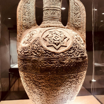 foto 2 : Vaso tipo Alhambra, terracotta stampata e incisa, Spagna XIV secolo