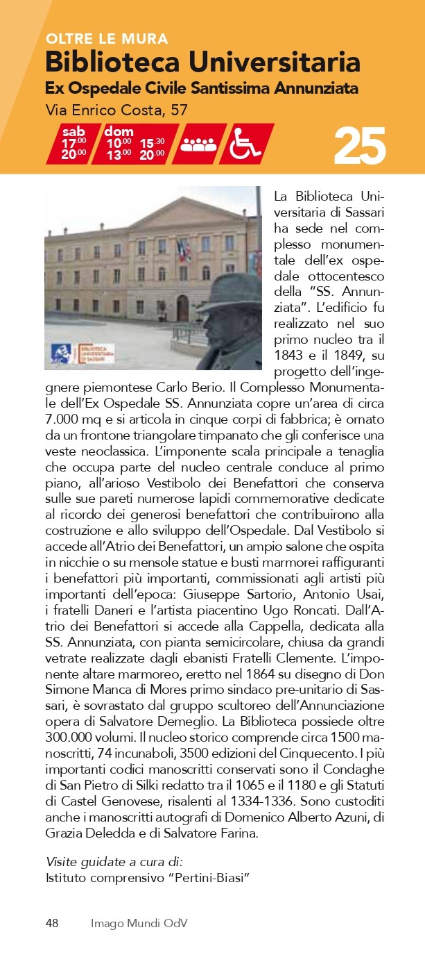 La Biblioteca Universitaria di Sassari aderisce alla manifestazione Monumenti Aperti.