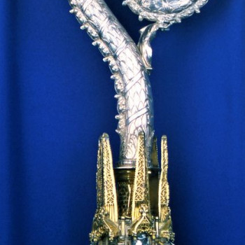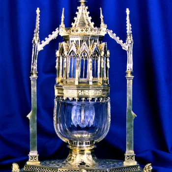 Reliquiario con il Dito di santa Caterina, inserito in una coppa cavalleresca in cristallo di rocca con anse a forma di draghi , databile alla fine del XV secolo e riconducibile a botteghe venete.