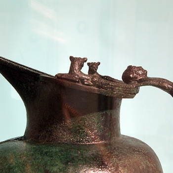 T. 1, V sec. a.C. oinochoe (particolare) con manico antropomorfo in bronzo