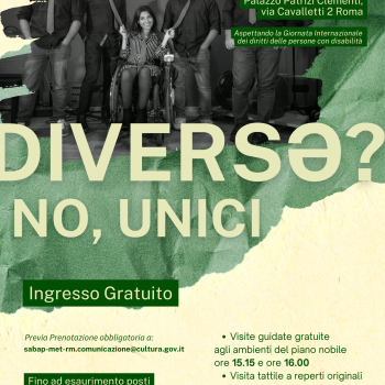 La Soprintendenza ABAP per l’area metropolitana di Roma e per la provincia di Rieti aderisce alle iniziative del Ministero della Cultura per la Giornata internazionale delle persone con disabilità, nata per promuovere i diritti e la partecipazione alla vita sociale e culturale delle persone disabili.