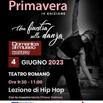 Nell’ambito della IV edizione del Festival di Primavera, dalle 9.30 alle 11.00, gli allievi del Centro studi Carmen Castiello con la maestra Maria Chiara Tedesco si esibiranno in una lezione di danza Hip Hop.