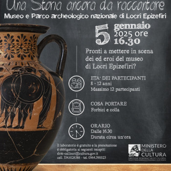 Pronti a mettere in scena dei ed eroi del Museo di Locri Epizefiri? I laboratori del Museo dei ragazzi del Museo e Parco archeologico nazionale di Locri domenica 5 gennaio 2025 propongono un laboratorio sul tema del mito.