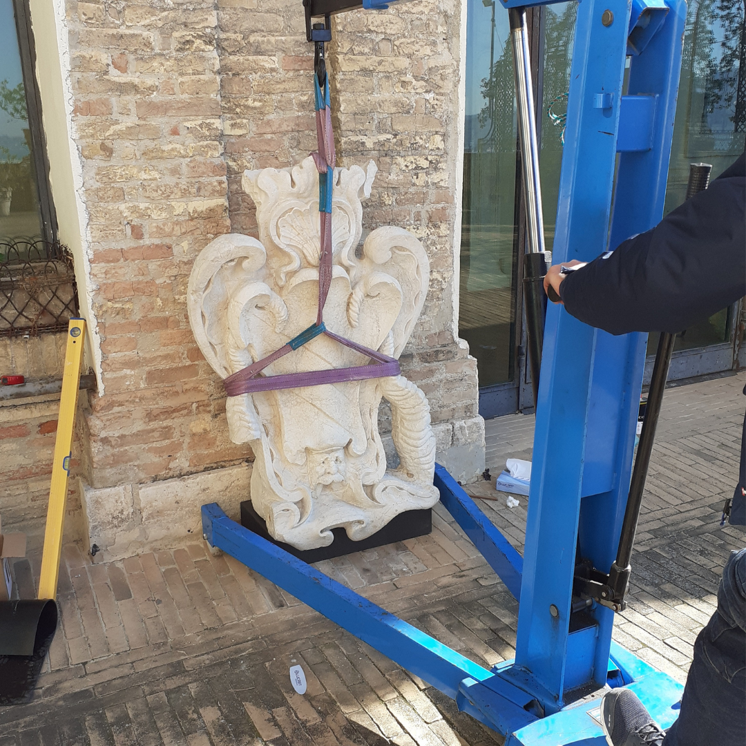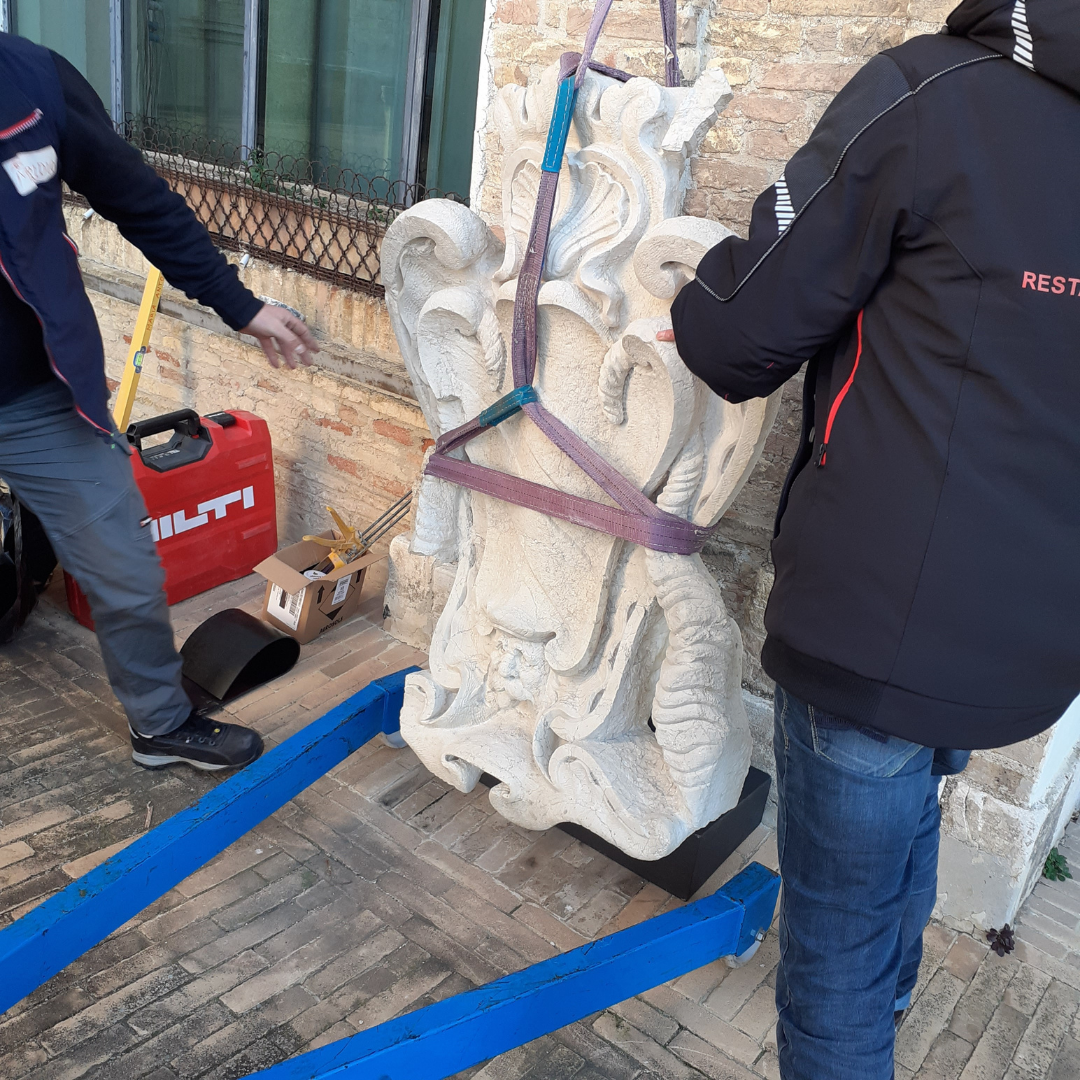 Dopo importante intervento di restauro lo stemma della famiglia Ferretti ritorna nel palazzo di Ancona sede del Museo Archeologico Nazionale delle Marche (MAN Marche).