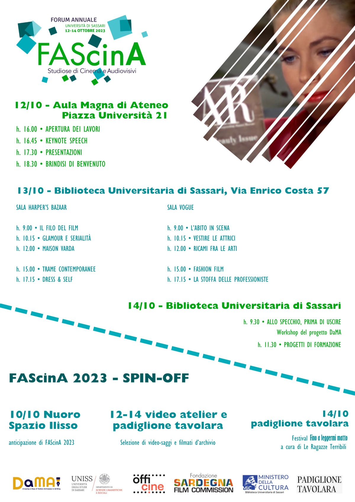 Vi proponiamo il programma di questa ricchissima XII edizione di FAScinA, il forum annuale delle studiose di cinema e audiovisivi che per il secondo anno consecutivo, approderà negli spazi della nostra Biblioteca Universitaria di Sassari.