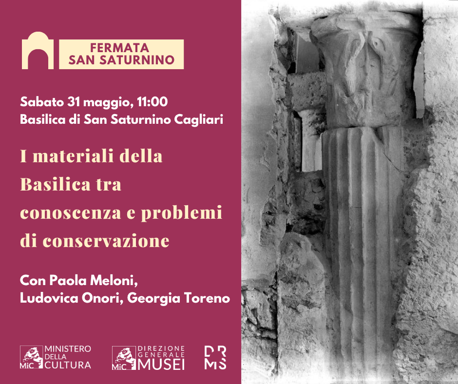 Sabato 31 maggio 2025 alle 11.00 presso la Basilica di San Saturnino di Cagliari, si terrà il quarto incontro del ciclo di conferenze Fermate San Saturnino, sul tema “I materiali della Basilica tra conoscenza e problemi di conservazione”. Ospiti dell’incontro saranno Paola Meloni, docente di Scienza e tecnologia dei materiali all’Università degli Studi di Cagliari, Ludovica Onori funzionaria restauratrice della Direzione Regionale musei nazionali Sardegna, Georgia Toreno funzionaria restauratrice della Soprintendenza di Cagliari.
