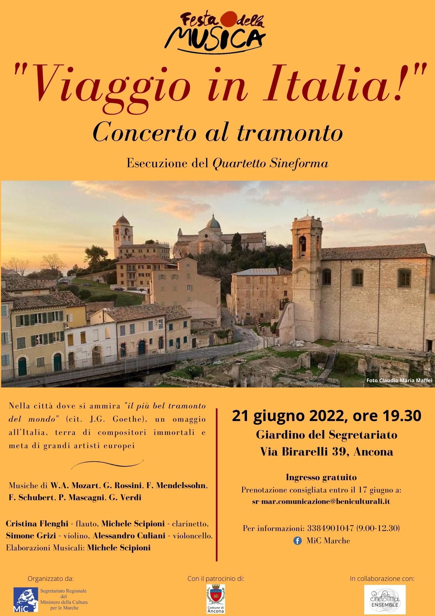 FESTA DELLA MUSICA 2022 "Viaggio in italia!" Concerto al tramonto. Ancona, 18 giugno 2022