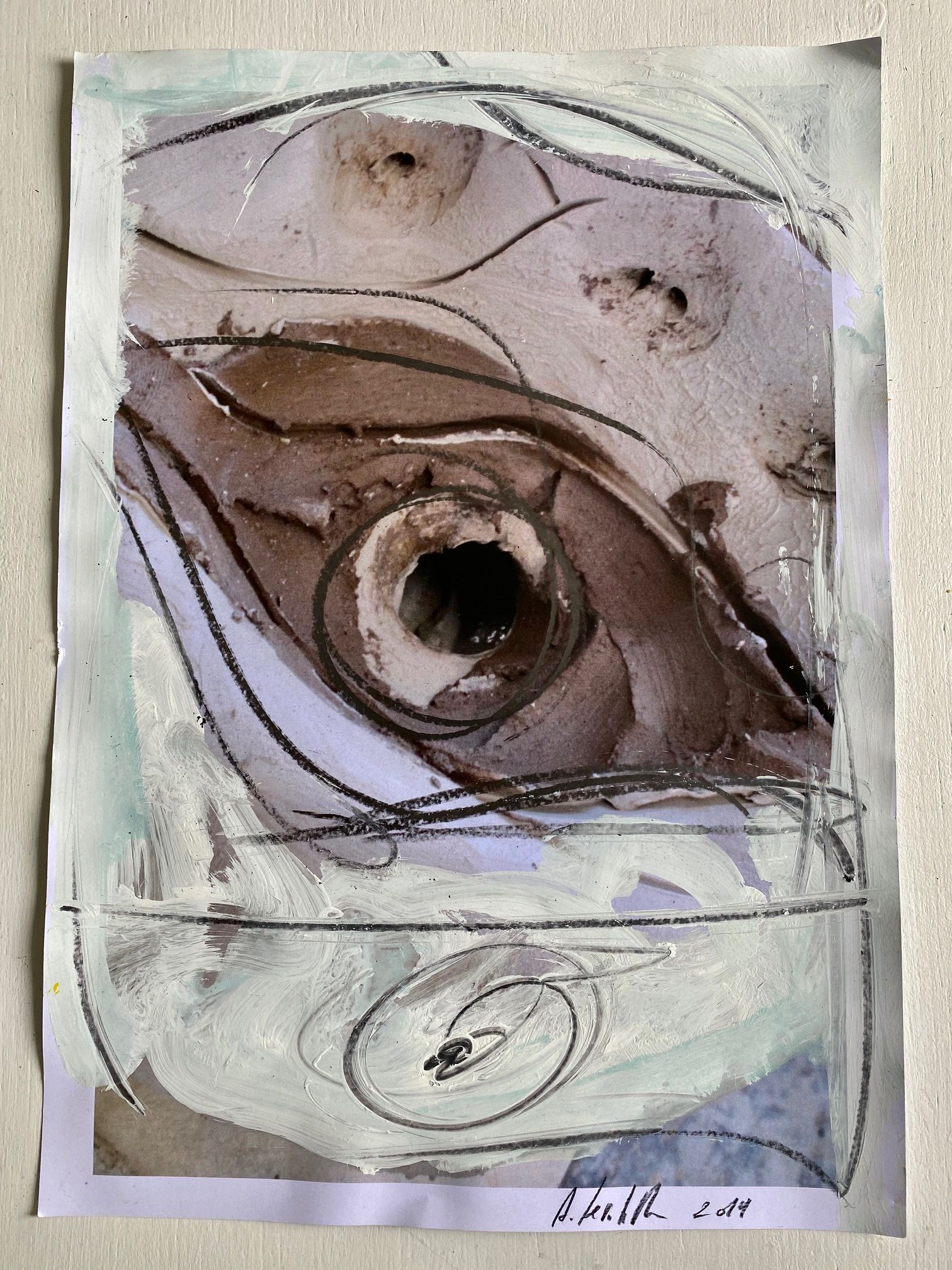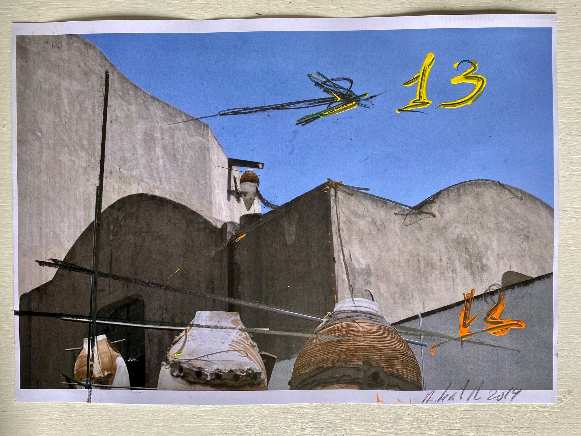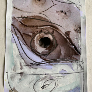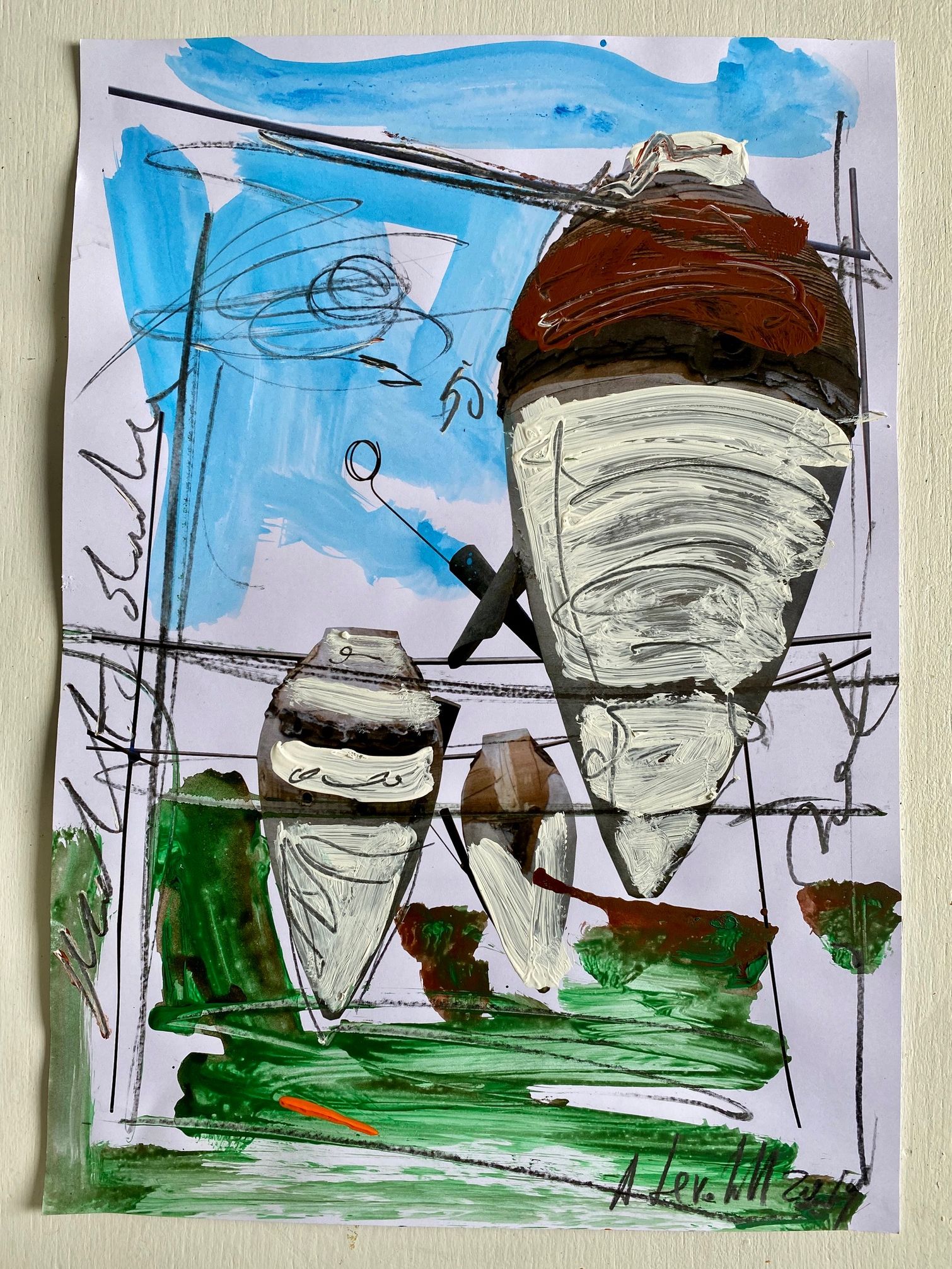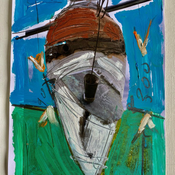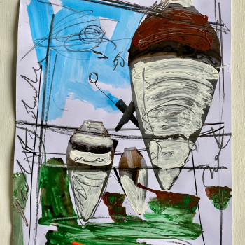 Antonio Ievolella Bozzetto preparatorio per il gruppo di ceramiche che andrà collocato nel Cimitero dei Certosini della Certosa di San Giacomo a Capri. Dettaglio. Matita e acrilico su carta cotone, 30 x 25 cm