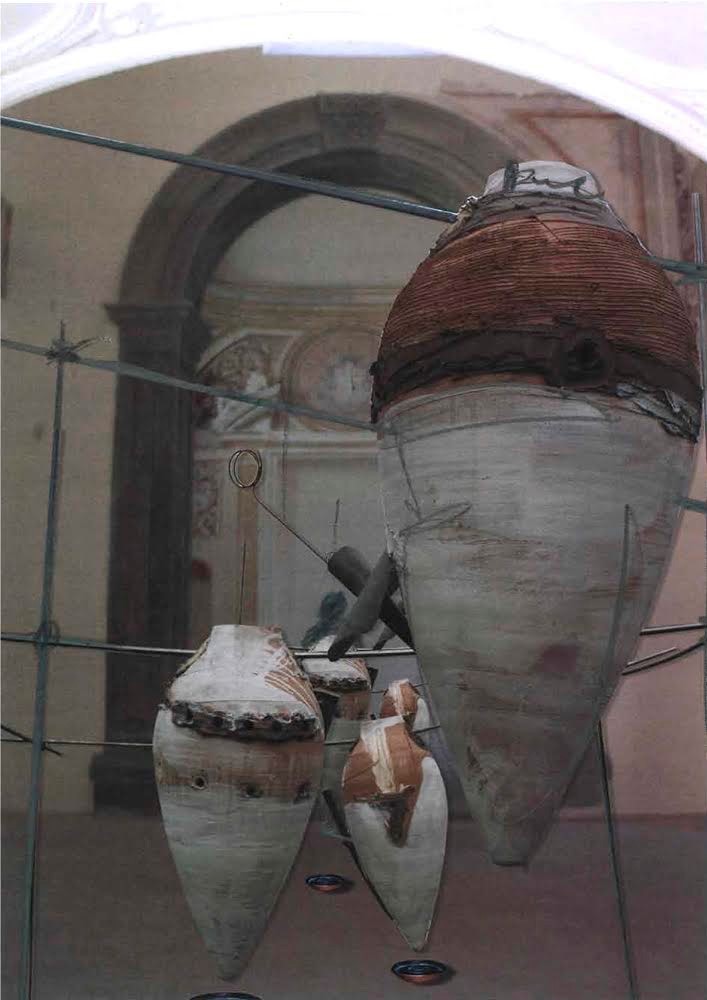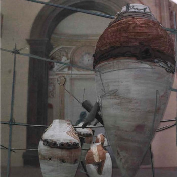 Rappresenta un culmine nell'opera di Antonio Ievolella che conduce con essa la sua arte verso una felice sintesi tra la solidità della forma plastica e l'intima trascendenza della forma simbolica. Anfore di terracotta, avvolte di segni, e canne di ferro che le tengono sollevate; corpi che conoscono la gravità e impalcati lineari che formano un ponte per tenerle sospese e farle avanzare nel solenne silenzio dei chiostri”, così Virginia Baradel, curatrice della mostra, descrive il progetto.