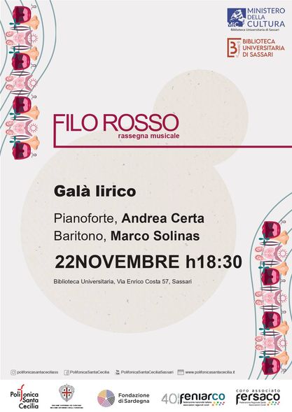 Presso la prestigiosa cappella della Biblioteca Universitaria di Sassari, un concerto per omaggiare la musica lirica, la Santa Cecilia di Sassari presenta, “Galà Lirico” con Andrea Certa al pianoforte e il baritono Marco Solinas.