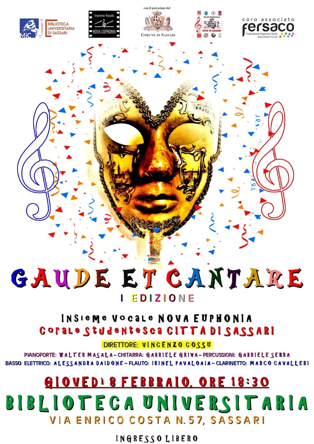 Sotto la guida del direttore Vincenzo Cossu, le corali saranno accompagnate dai musicisti Walter Masala pianoforte, Gabriele Griva chitarra, Gabriele Serra percussioni, Alessandra Daidone basso elettrico, Irinel Pavaloaia flauto, Marco Cavalleri clarinetto.