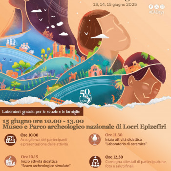 Nell'ambito delle Giornate Europee dell'Archeologia 2025, il Museo e Parco archeologico nazionale di Locri domenica 15 giugno propone un laboratorio didattico gratuito per bambini e ragazzi dai 6 ai 14 anni. L'attività che prevede max 30 partecipanti ha l'intento di promuovere nei giovanissimi l'amore per il proprio patrimonio culturale attraverso momenti di conoscenza e di apprendimento che si fondano sull'approccio ludico e pratico-manuale. Prenotazione obbligatoria.