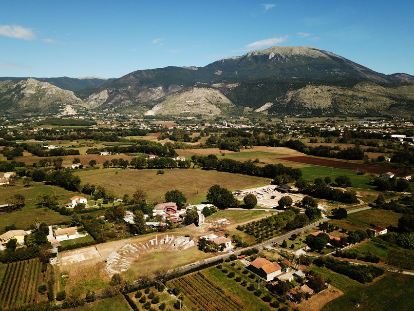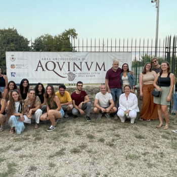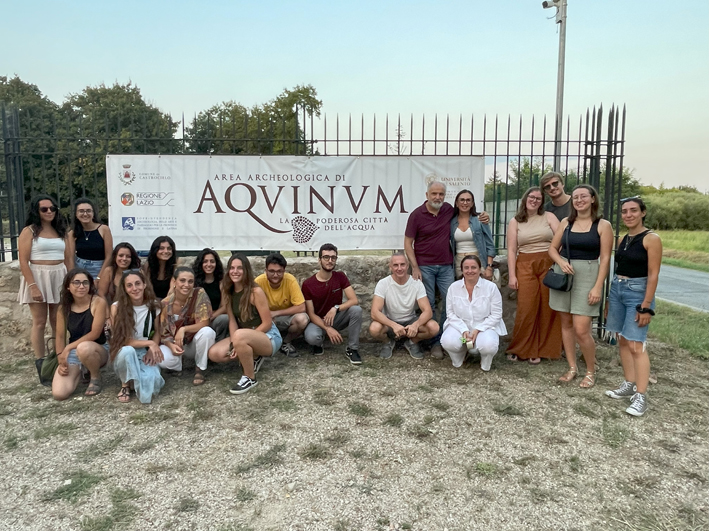 L’antica città di Aquinum sorgeva nella media valle del Liri, ai piedi del gruppo del monte Cairo in una vasta area pianeggiante lambita ad est da tre antichi laghi oggi prosciugati (Vallone di Aquino), dove scorre un corso d’acqua, affluente di sinistra del Liri, denominato Le Forme d’Aquino. Attualmente la città si estende, per la gran parte, nel territorio comunale di Castrocielo in provincia di Frosinone, così come l’Area Archeologica oggetto di scavi sistematici in concessione ministeriale da parte dell'Università del Salento dal 2009.