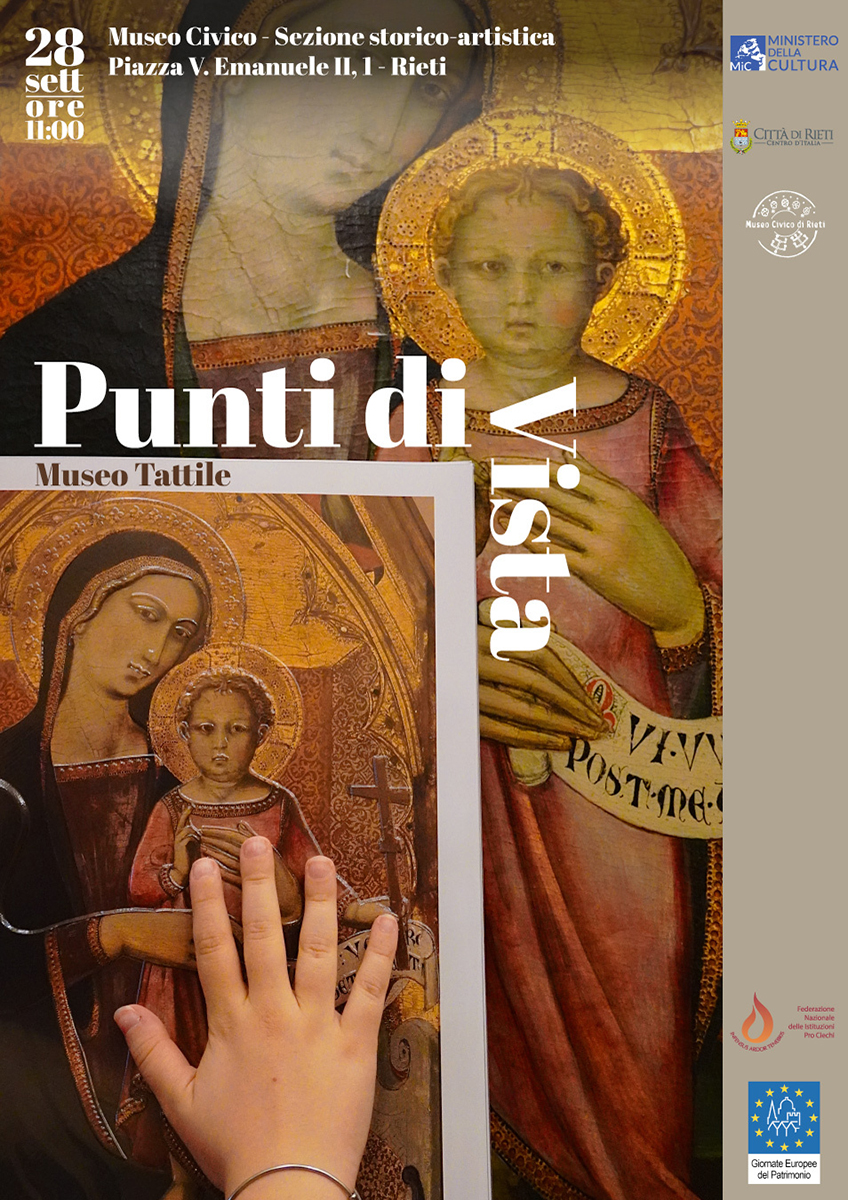 L’iniziativa che propone il Museo Civico di Rieti fa parte di un progetto più ampio che vede la costituzione di un percorso permanente di inclusione alle collezioni del Museo Civico. Grazie ad un finanziamento del Ministero della Cultura dedicato ai piccoli musei è stato possibile iniziare questo processo e realizzare un percorso per non vedenti e ipovedenti che si snoda attraverso le sale della sezione Storico – Artistica del Museo Civico, alla scoperta di opere e oggetti rappresentativi che permetteranno di conoscere la città di Rieti e alcuni suoi monumenti. Tema specifico del percorso museale che si inaugura è il paesaggio urbano della città di Rieti, caratteristica per il suo aspetto attuale di cittadina medievale che conserva nell’impianto la memoria di città romana. Un percorso museale che è quasi un cammino tra le vie di Rieti che con il suo paesaggio storico, permette di scoprire i principali assi di viabilità, i palazzi, gli edifici religiosi, le piazze e gli edifici produttivi.