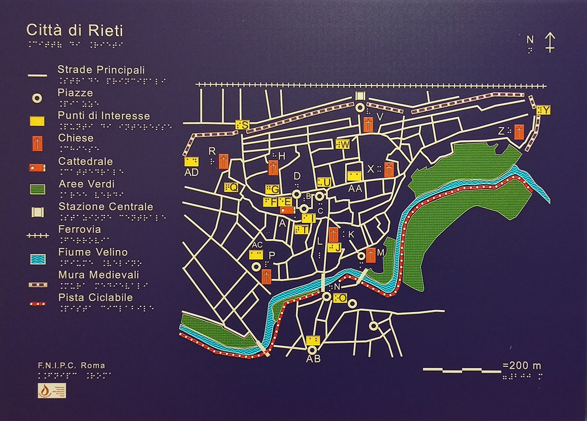 mappa tattile della città di Rieti con il posizionamento dei principali punti di interesse della cittàfig