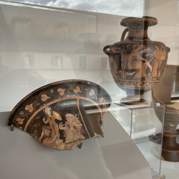 3. Assteas, parodia del Ratto di Cassandra. Frammento di cratere a campana a figure rosse, IV secolo a.C.