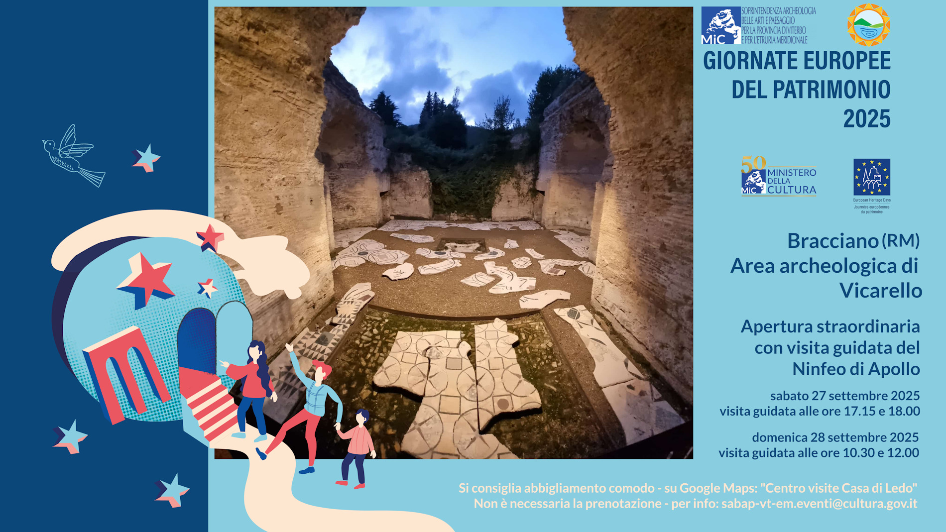 In occasione delle GEP 2025 – Giornate Europee del Patrimonio ed in collaborazione con il Parco Naturale Regionale di Bracciano-Martignano, la SABAP-VT-EM ha previsto l’apertura straordinaria al pubblico dell’area archeologica di Vicarello: