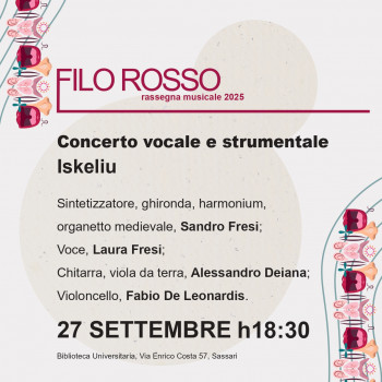 Sabato 27 settembre ore 18.30 – Iskeliu in concerto – Rassegna Filo Rosso.