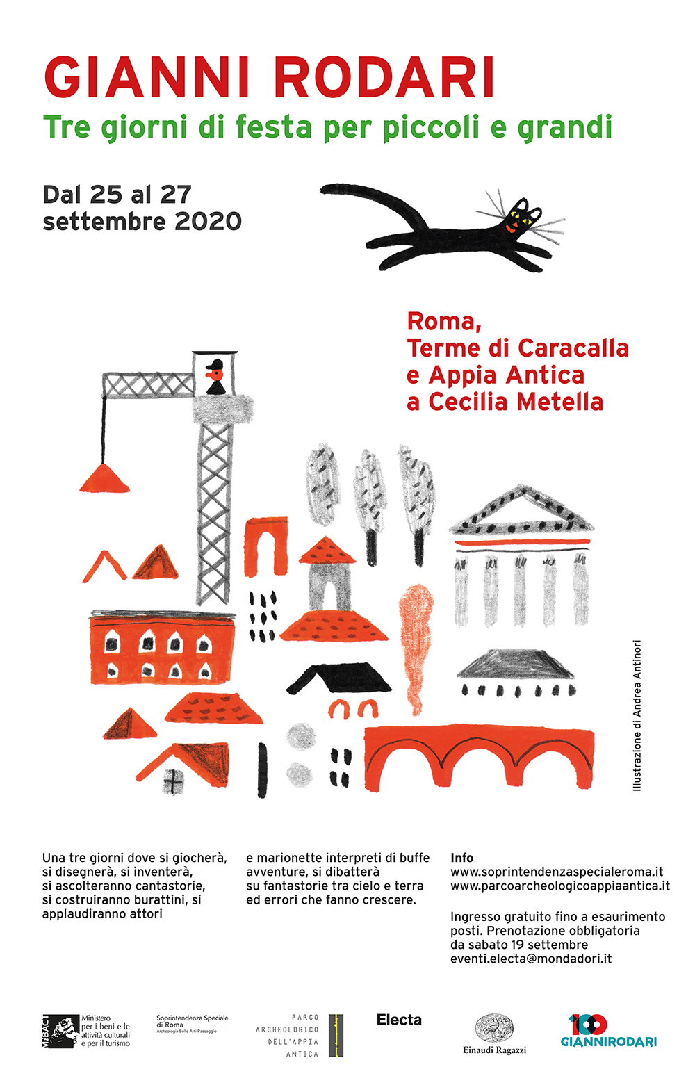 Gianni Rodari. Tre giorni di festa per grandi e piccoli è l’appuntamento pensato per gli spazi verdi e monumentali delle Terme di Caracalla e della Regina Viarum, nel tratto dell’Appia Antica dove si innalza il mausoleo di Cecilia Metella, che si terrà da venerdì 25 a domenica 27 settembre 2020.