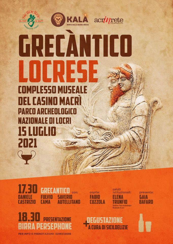 Giovedì 15 luglio 2021 nel Complesso museale del Casino Macrì del Parco archeologico nazionale di Locri andrà in scena "Grecantico Locrese", serata di racconto, musica e tradizioni con Daniele Castrizio, Fulvio Cama e Saverio Autellitano, con la partecipazione di Fabio Cuzzola. L'evento sarà presentato da Gaia Bafaro.