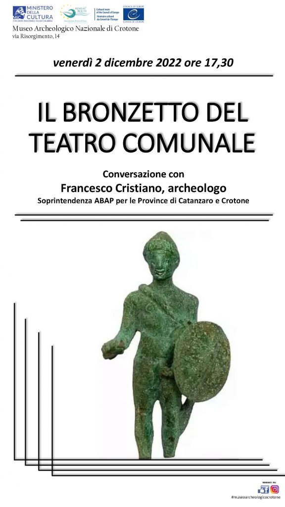 Conversazione con Francesco Cristiano, archeologo Soprintendenza ABAP per le province di Catanzaro e Crotone sul pregevole manufatto rinvenuto nel corso di interventi di natura archeologica presso il cantiere urbano dell’ex Ospedale Civile «S. Giovanni di Dio» tra il 2006 ed il 2008. Il bronzetto per fattura, stile e iconografia, costituisce un’importante attestazione della vivacità dell’artigianato attivo nella città di Crotone tra IV e III secolo a.C.