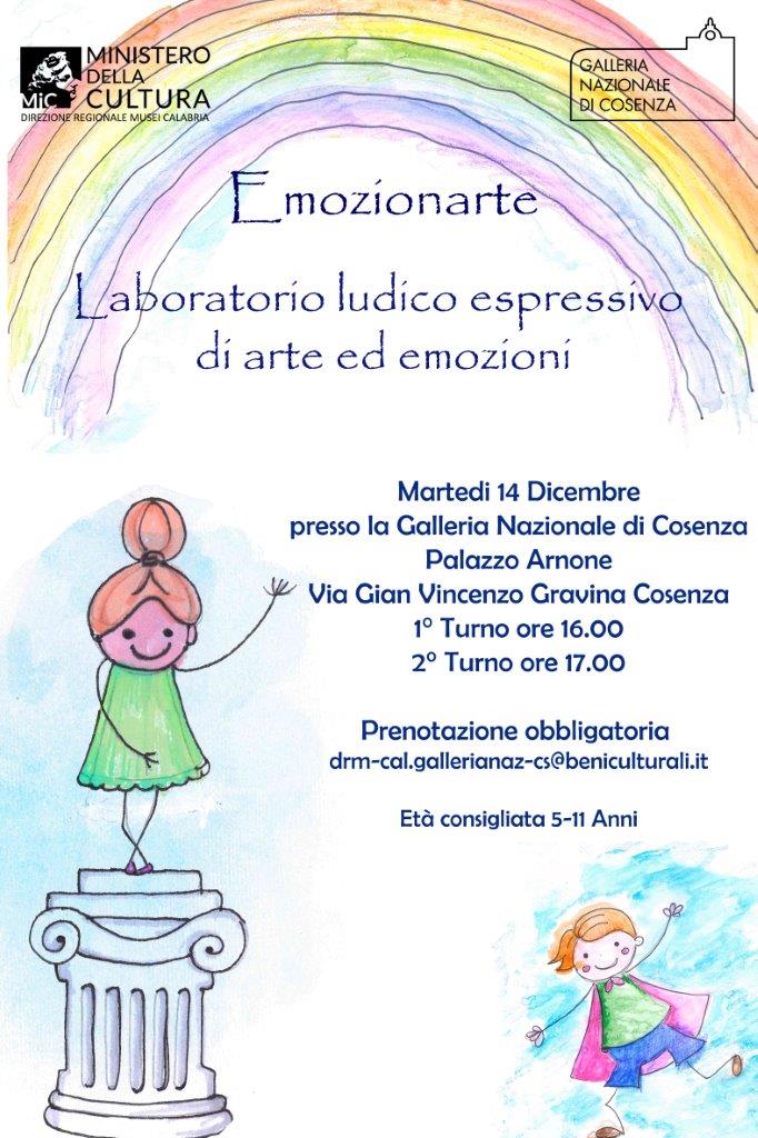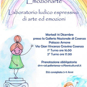 martedì 14 dicembre h 16.00 - 18.00 laboratorio ludico espressivo per bambini con prenotazione obbligatoria drm-cal.gallerianaz-cs@beniculturali.it