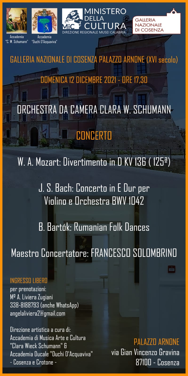 h 17.30 concerto orchestra da camera Clara W. Schumann