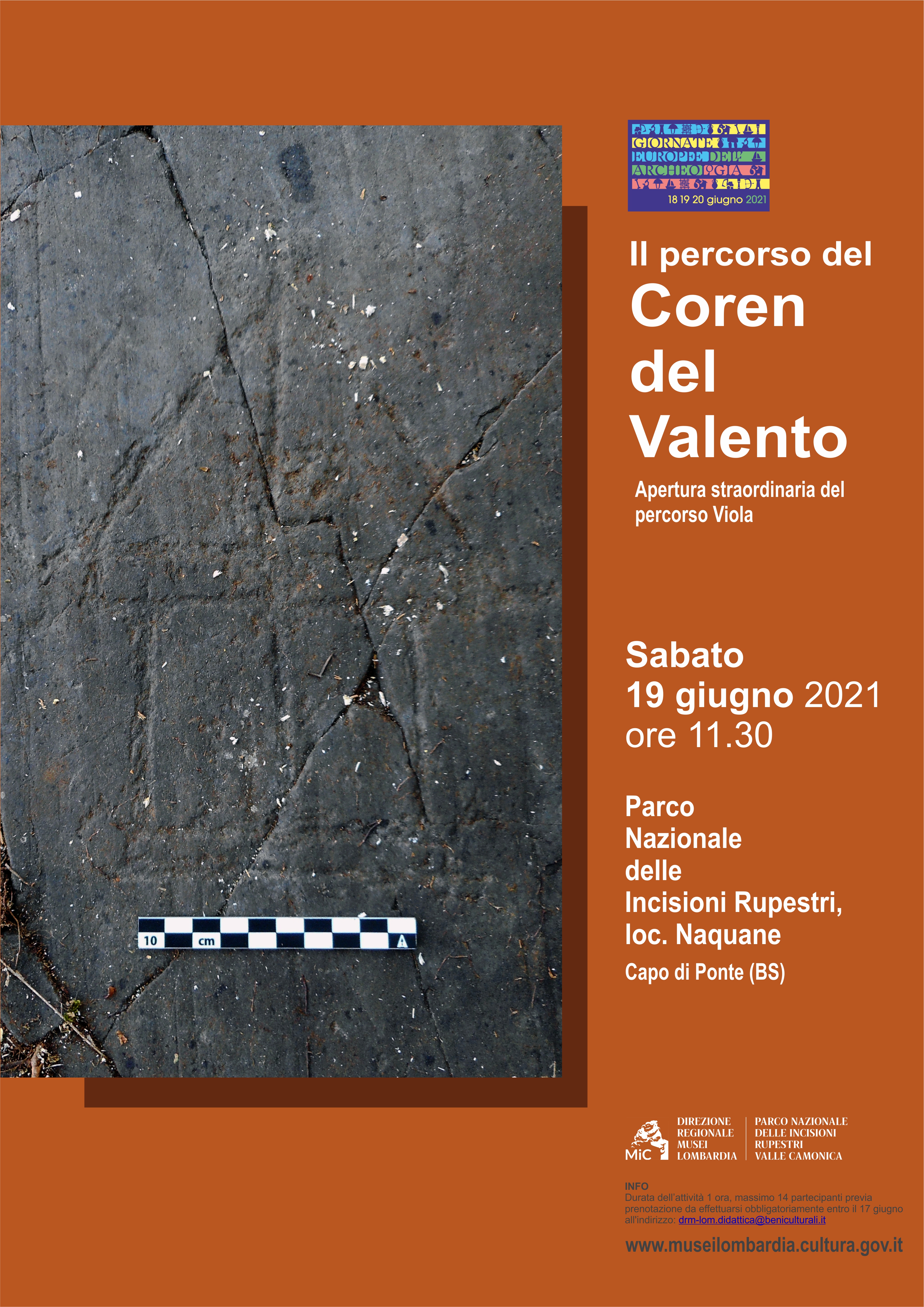 Apertura straordinaria del percorso “Viola” che porta all’area del Coren del Valento. Qui, tra le numerose raffigurazioni presenti sulla Roccia 60, spicca la figura di una Rosa Camuna, divenuta simbolo della Regione Lombardia dal 1975. Sarà l’occasione per vedere l’intervento di sistemazione del percorso realizzato con il supporto di Regione Lombardia nel 2020 e i nuovi pannelli esplicativi.