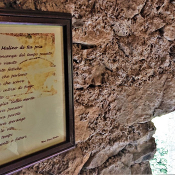 Il cammino dell’antico mulino di Belpiano Ra Pria, rinato a nuova vita per nuove avventure dal suo riconoscimento nel 2010, apprezzato da coloro che lo visitano, rimanendovi nel cuore come luogo magico ed inaspettato. Emerge per la sua tipologia costruttiva e funzionale e le dimensioni, già definito “Gioiellino di Liguria”, mulino imbuto, mulino controcorrente, mulino al contrario, scrigno prezioso di tante ricchezze. Imparare per la vita l’arte del condividere con poesia, racconti, dipinti e manufatti in miniatura, nei commenti scritti nel quaderno/memoria da visitatori attenti, lo stupore negli occhi di bimbi e grandi conquistati. L’arte di condividere in rete. Imparare per la vita dalla straordinaria ingegnosità contadina artefice di una struttura così unica in Liguria nell’ormai lontano XVIII° sec., dall’utilizzo e lavorazione del pregiato legno di castagno, dalle pietre scolpite, dalla presenza dell’acqua elemento vitale. Imparare per la vita la semplicità, l’essenzialità, il solo necessario e nessuna superficialità. Dalla turbina che gira instancabile macinando cultura, arte, insegnamenti di vita, Passato e pietre che parlano e che continueranno a parlare a tutte le generazioni. La porta aperta per “Imparare per la vita”.