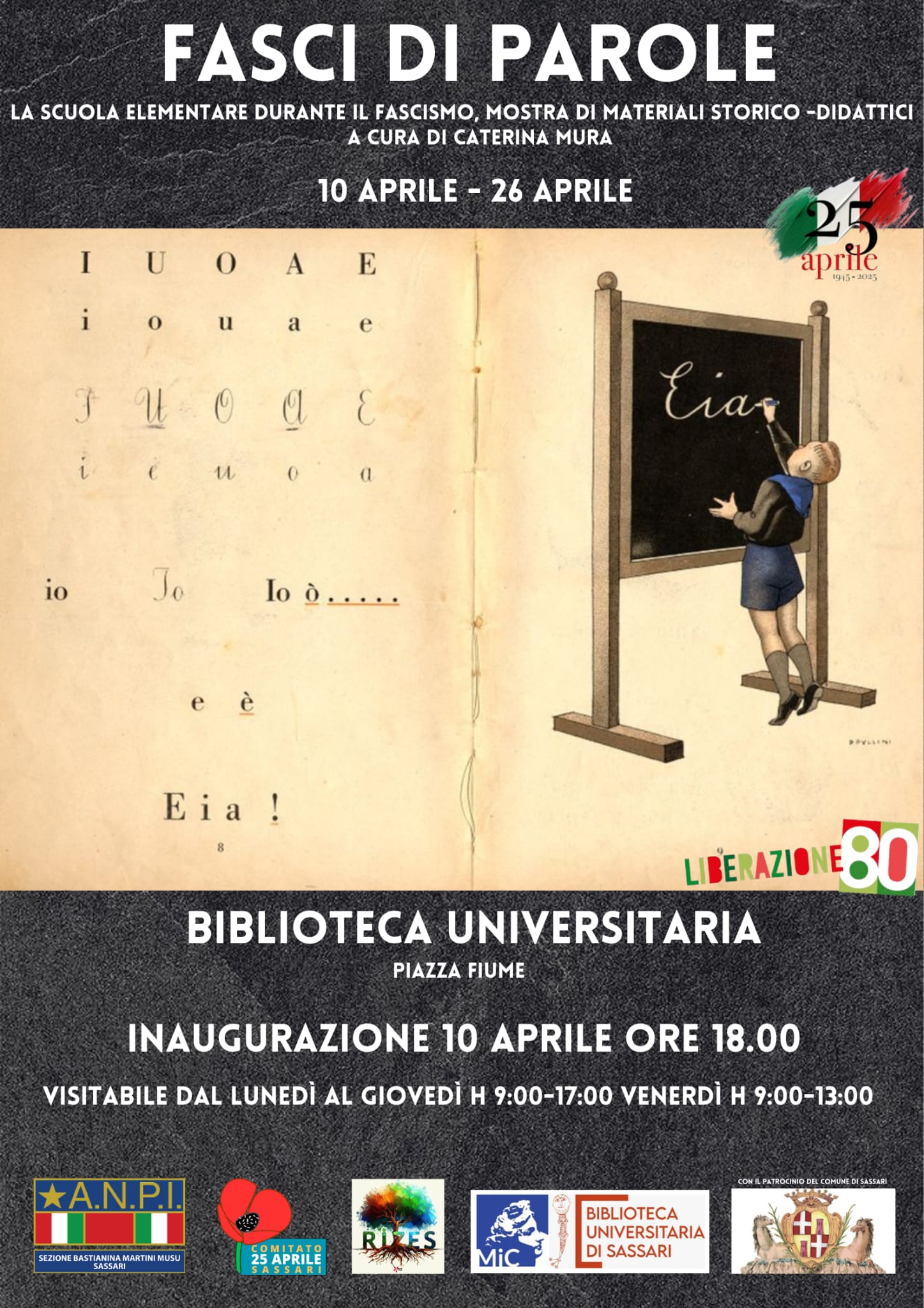 La mostra curata da Caterina Mura, patrocinata dal Comune di Sassari ed organizzata dalla Biblioteca Universitaria di Sassari in collaborazione con L’A.N.P.I. Associazione Nazionale Partigiani d’Italia sezione di Sassari s’inserisce nei festeggiamenti previsti per l'ottantesimo anniversario della Liberazione d'Italia dal nazi-fascismo (25 aprile 1945). Resterà visitabile dal 10 aprile fino al 26 aprile nei consueti orari di apertura della biblioteca