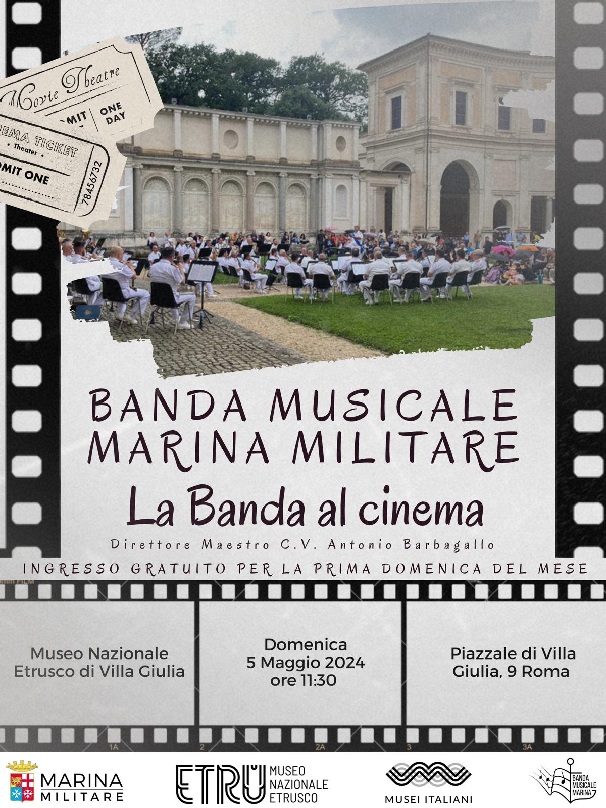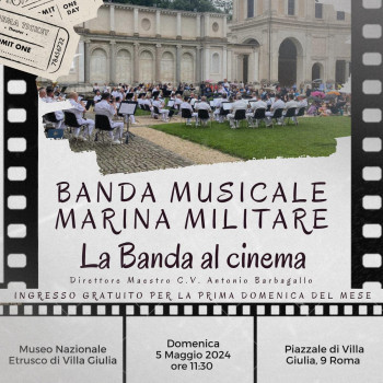 In occasione della prima domenica del mese a ingresso gratuito, domenica 5 maggio 2023 alle ore 11.30, il Museo Nazionale Etrusco di Villa Giulia accoglie nei suoi giardini rinascimentali un nuovo concerto della Banda Musicale della Marina Militare che, in questa occasione presenta un programma di celebri colonne sonore del cinema internazionale.