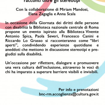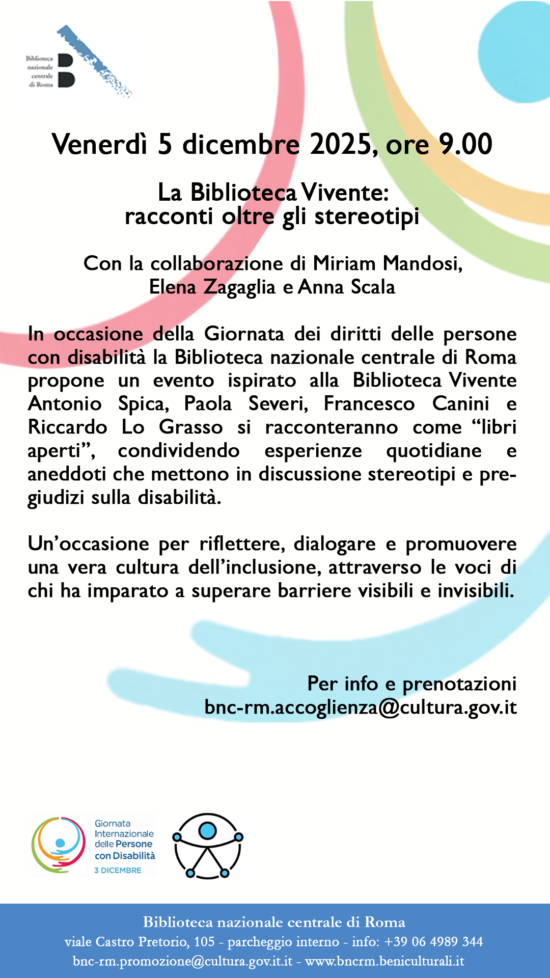 In occasione della Giornata Internazionale dei Diritti delle Persone con Disabilità, la Biblioteca nazionale centrale di Roma propone un appuntamento speciale dedicato alla valorizzazione di ogni condizione umana e alla promozione di una vera cultura dell’inclusione.